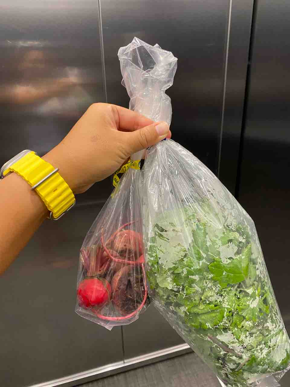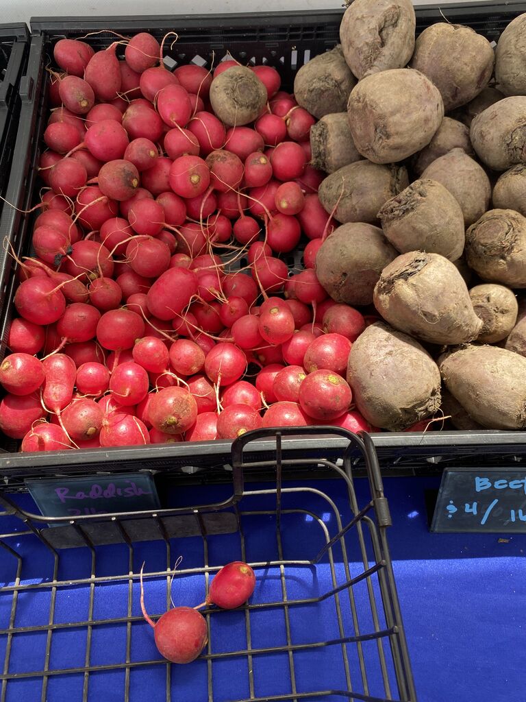 値段聞いてないけど、サラダミックスが4ドルでビーツが5ドルなのかな?