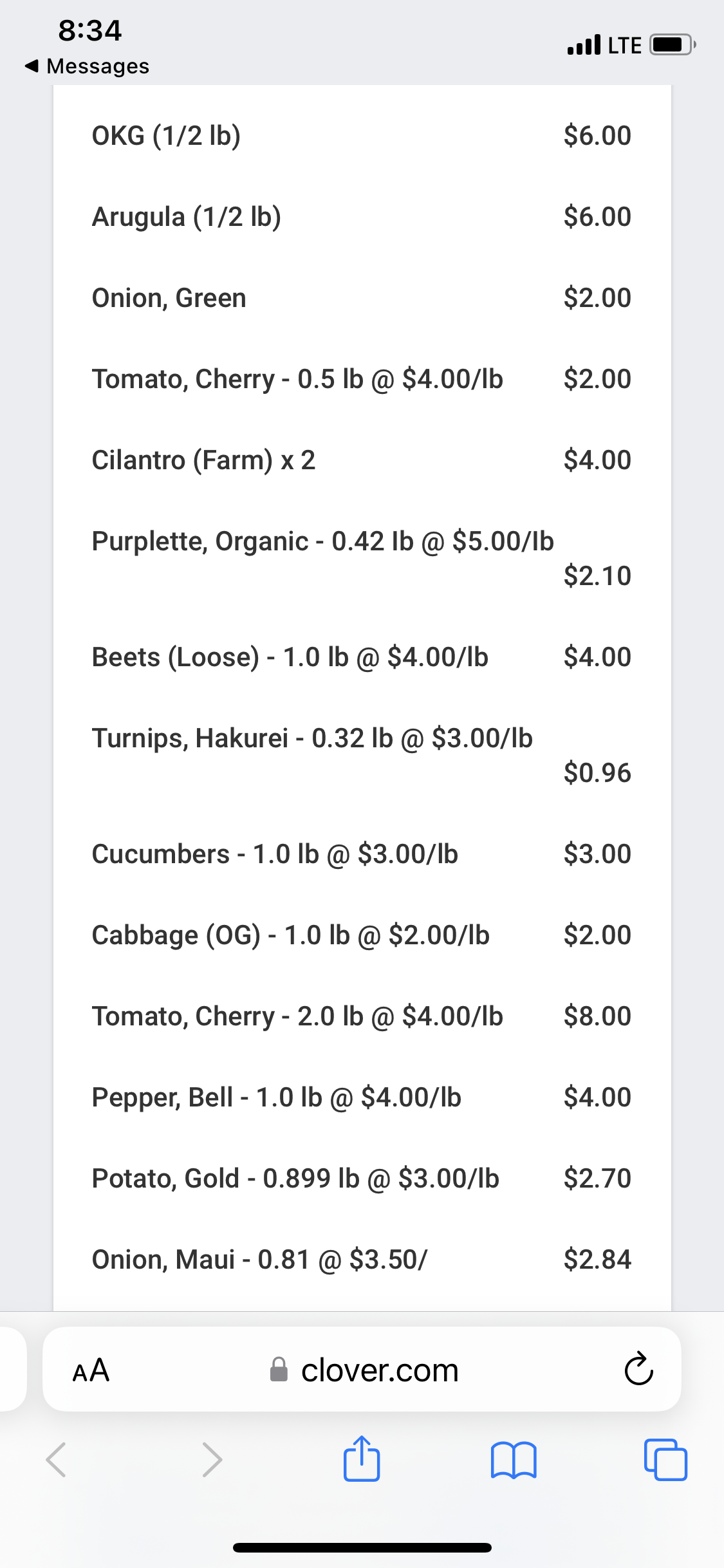 マオオーガニックファームで22ドル、スプラウト屋さんで15ドル、トマトが6ドル、カラマンシー2ドル。