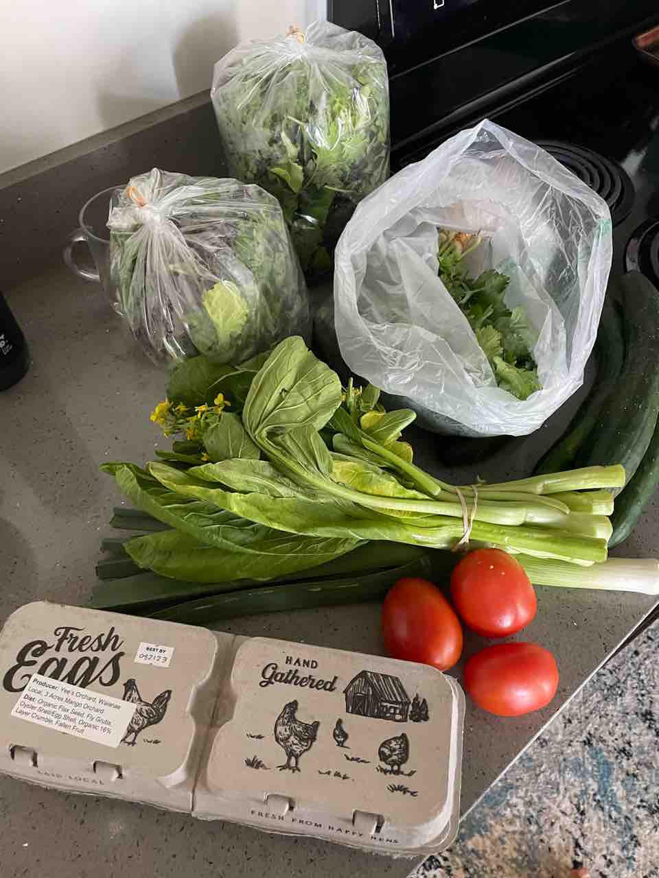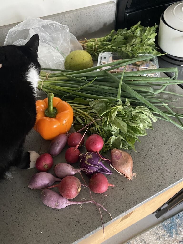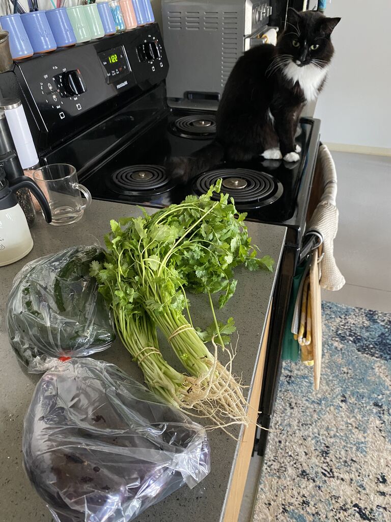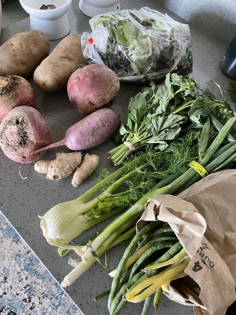 昨日はマオオーガニックファームでパクチー3束と、アルグラ3袋、スパイシーミックスを1袋購入。全部で20ドルでした✌️お安い!パクチーは2ドルで、野菜袋は2個で7ドルでした。
