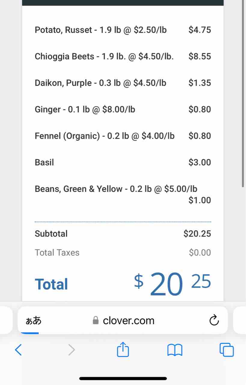 マオオーガニックファームで、ビーツとサラダミックスを買いました。9ドルでした。