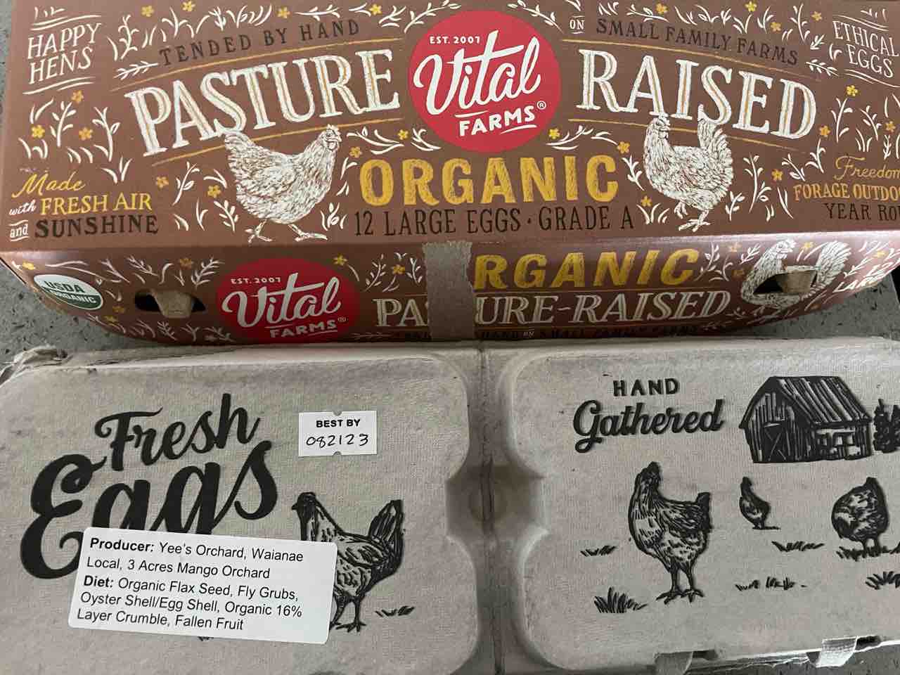 店員のお兄ちゃんにPasture raisedのが欲しいんだけどって言って、卵いっぱいチェックしてもらったら出てきたYee's Orchard farmsの卵!