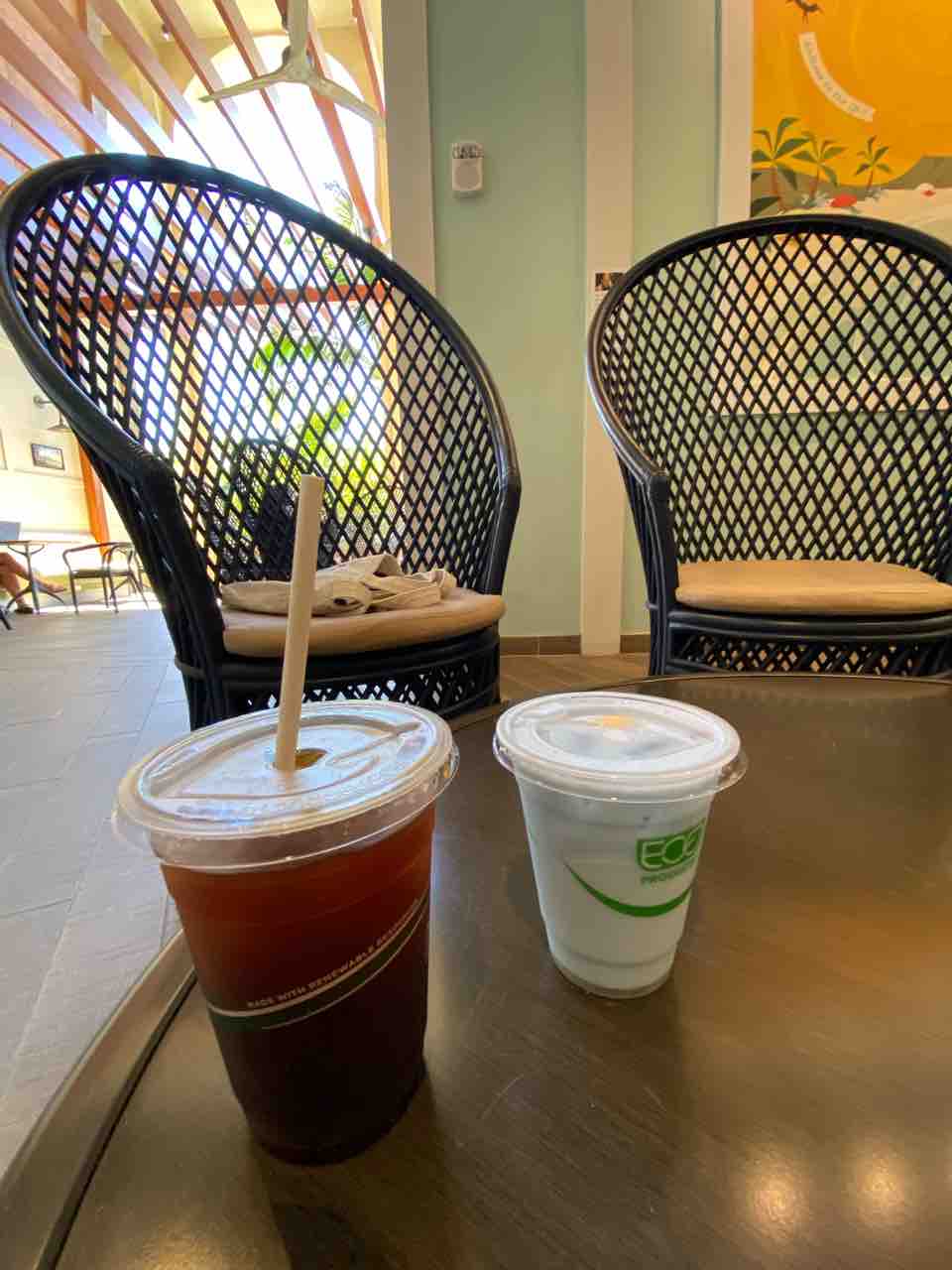 私はアイスアメリカーノ。夫はバタフライピーラテ!