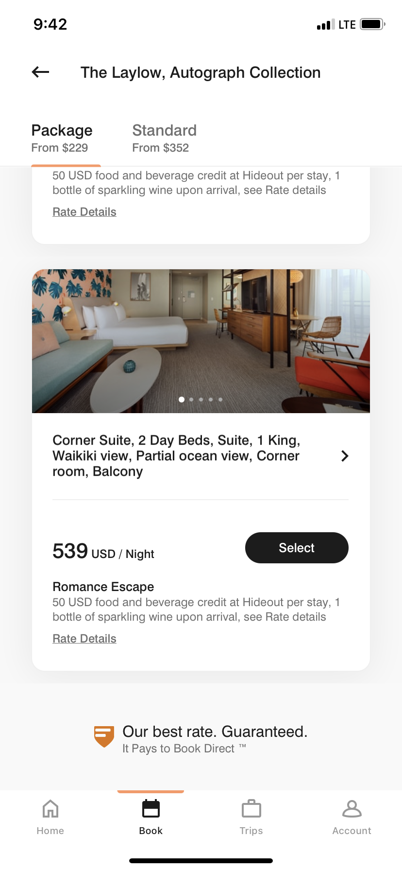 お部屋は一番安いお部屋を229ドル(ハワイ州住民割引カマアイナ利用)で予約していたのだけれど、夫が持っていた「スイートルームアップグレード」っていう券(?)を使ってアップグレードしてもらえました。