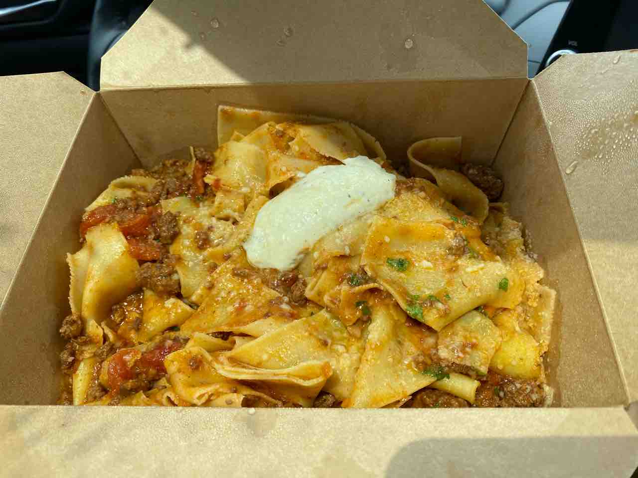 パスタはPappardelle Bologneseっていうやつ。パッパデレボロネーズ?
