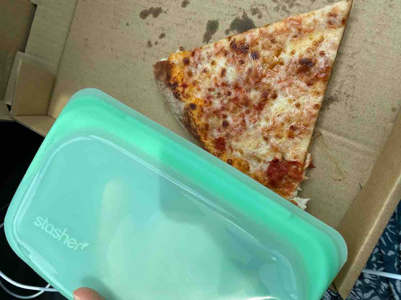 ピザは食べきれなくて、普段持ち歩いてるスタッシャーバッグに。