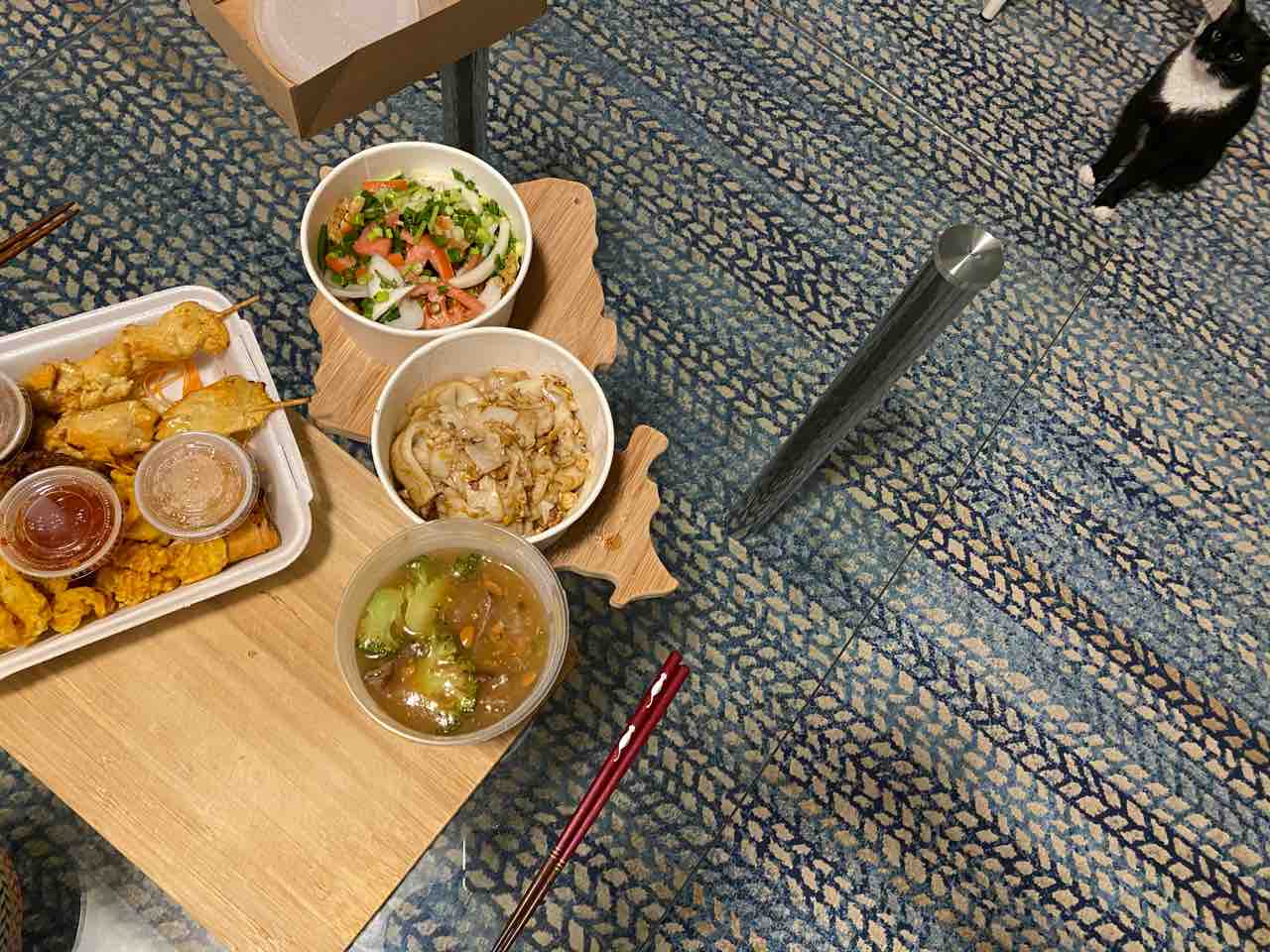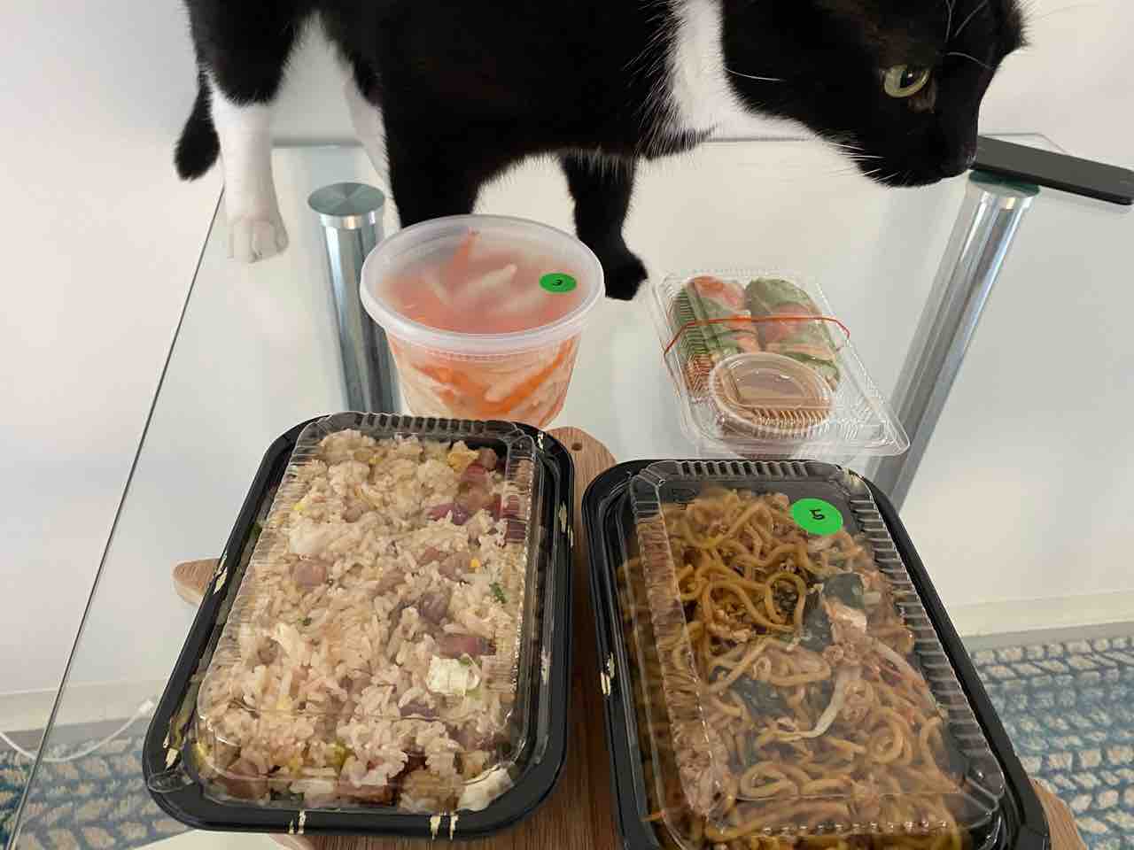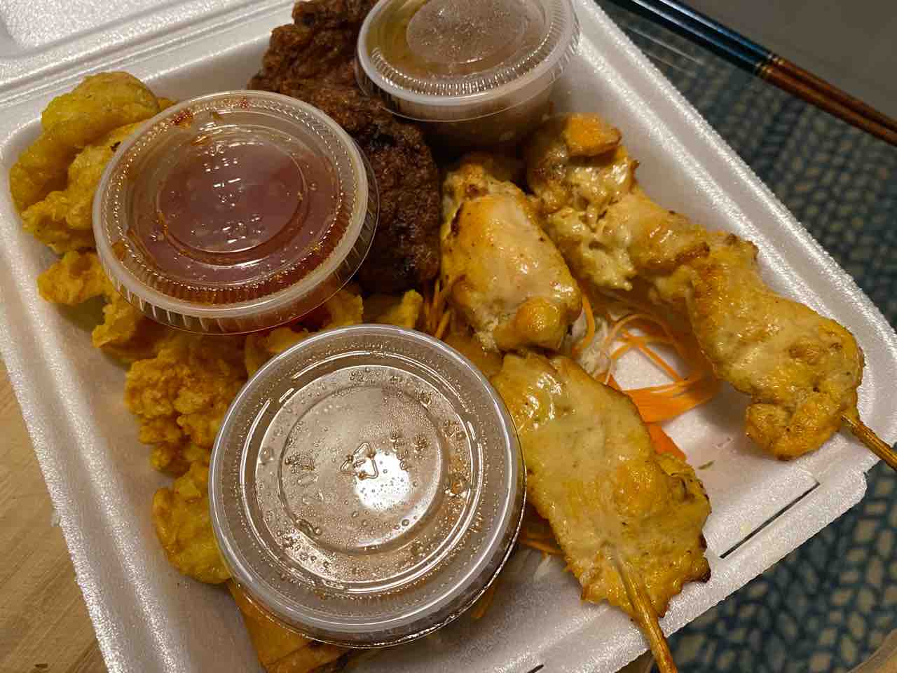 ウーバーイーツのピックアップで頼んでおいた、タイフライドチキンとヤムウンセン(ビーフ)。