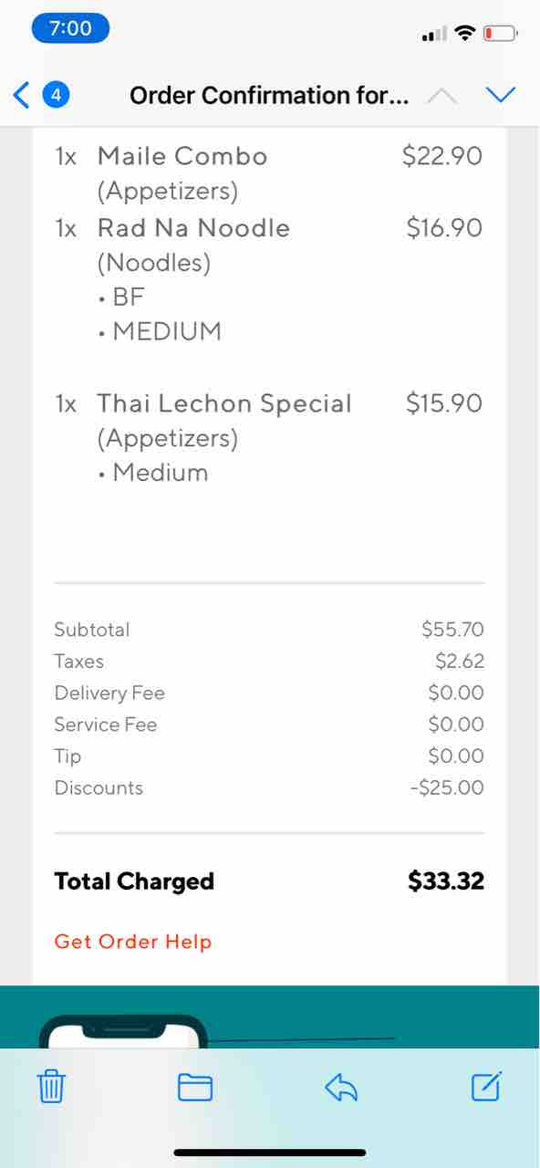 DoorDash(デリバリーアプリ)の25ドル引きで、33ドルで食べれました✌️