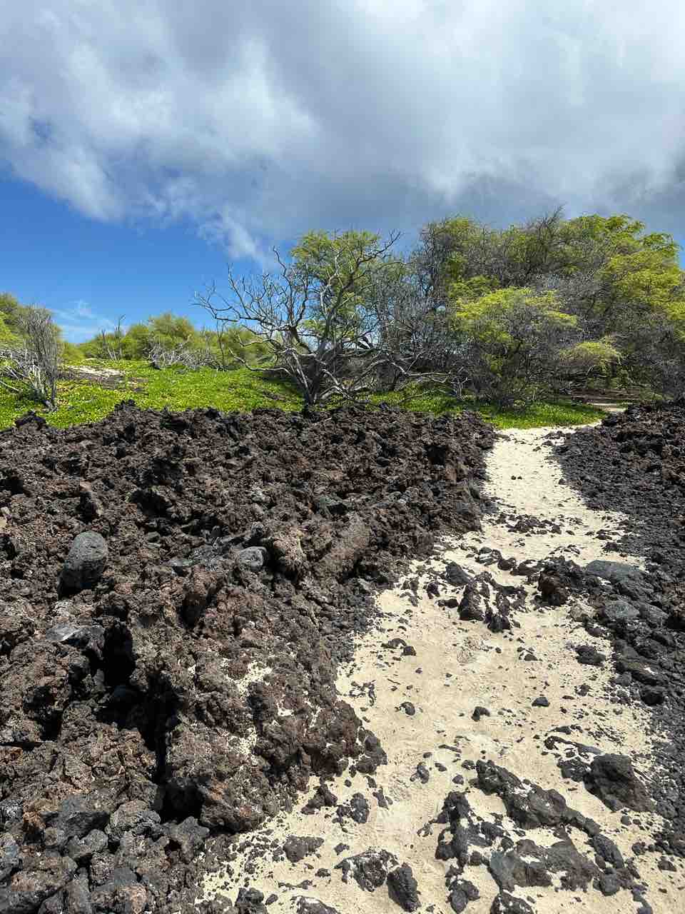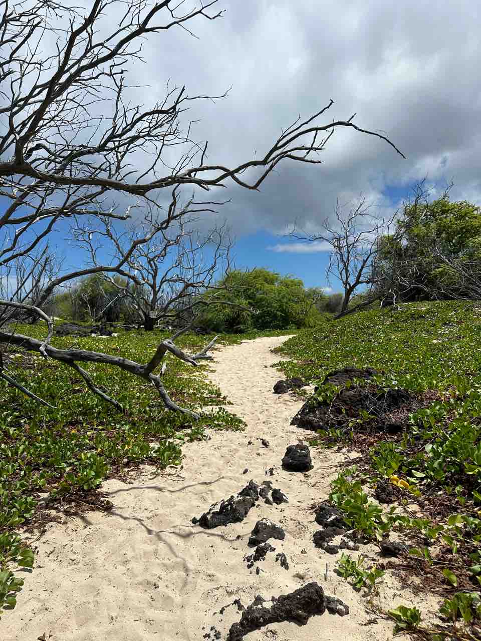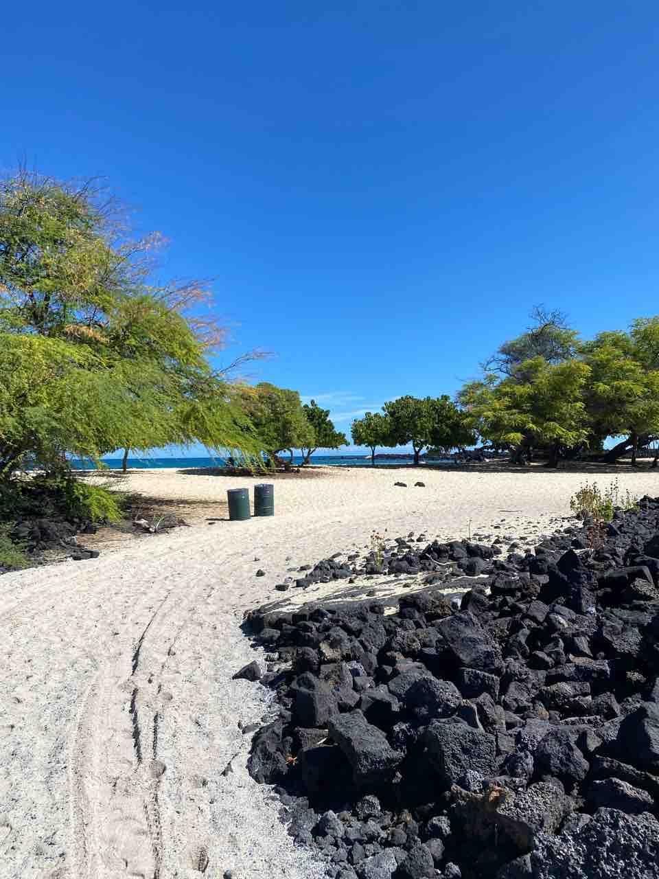 夫がハワイ島で一番好きなビーチへ。私は、ここのビーチ自体は好きなんだけれど30分歩くのが嫌で、行きたくなかったんだけれど夫に負けました😇