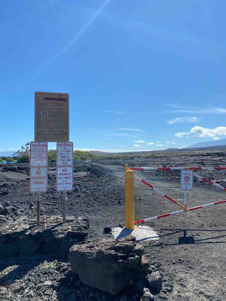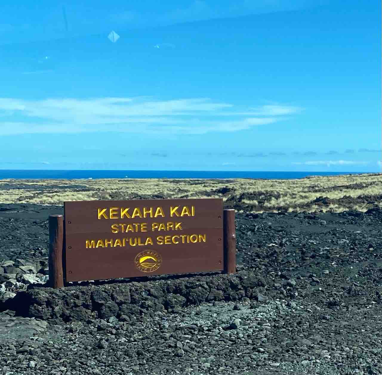 ケカハ カイ ステートパークのマハイウラ セクションという看板があるところを車で進みます。(コナ空港の近くです)