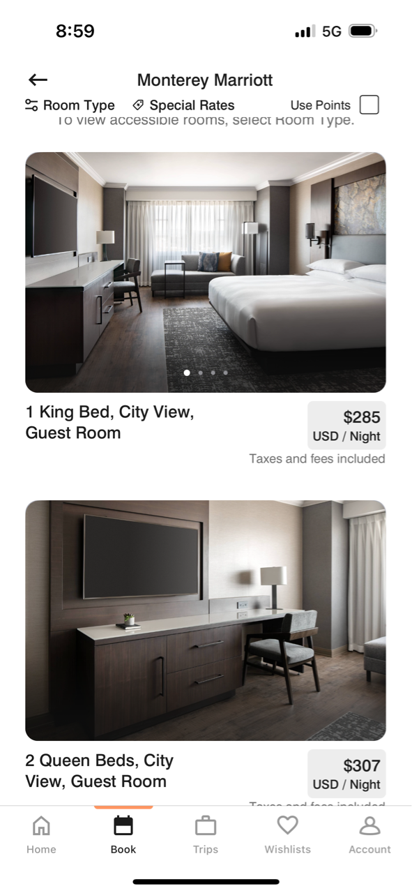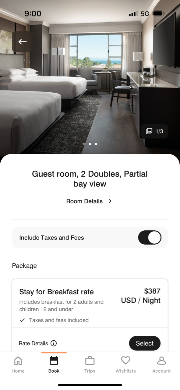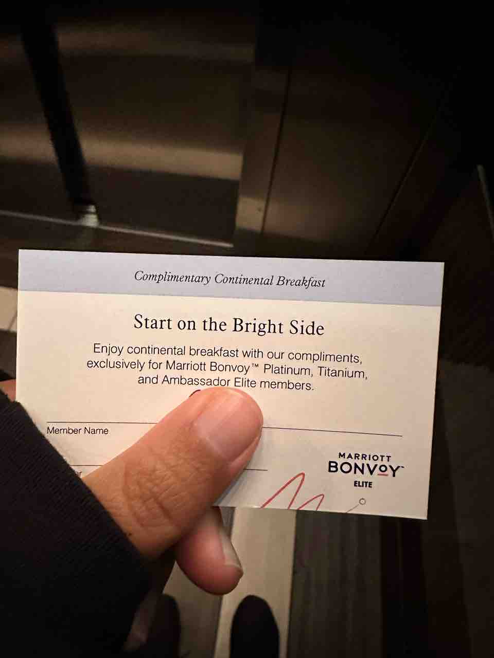 私たちの泊まった部屋で、マリオットのエリートメンバーじゃない人が朝ごはん付きにすると387ドル!