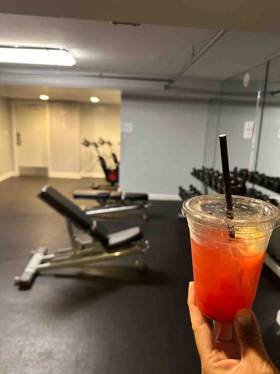 ジムの中を通ってジャグジーに行って、ジャグジーで飲みました。