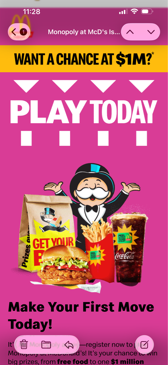 昨日、マックからメールが来てモノポリーのゲームがスタートしたとのこと!