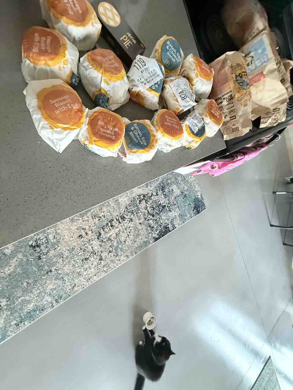 夫と朝マックに行って無料クーポンを使ってビスケットサンドを大量にオーダーしてきましたっ!✌️