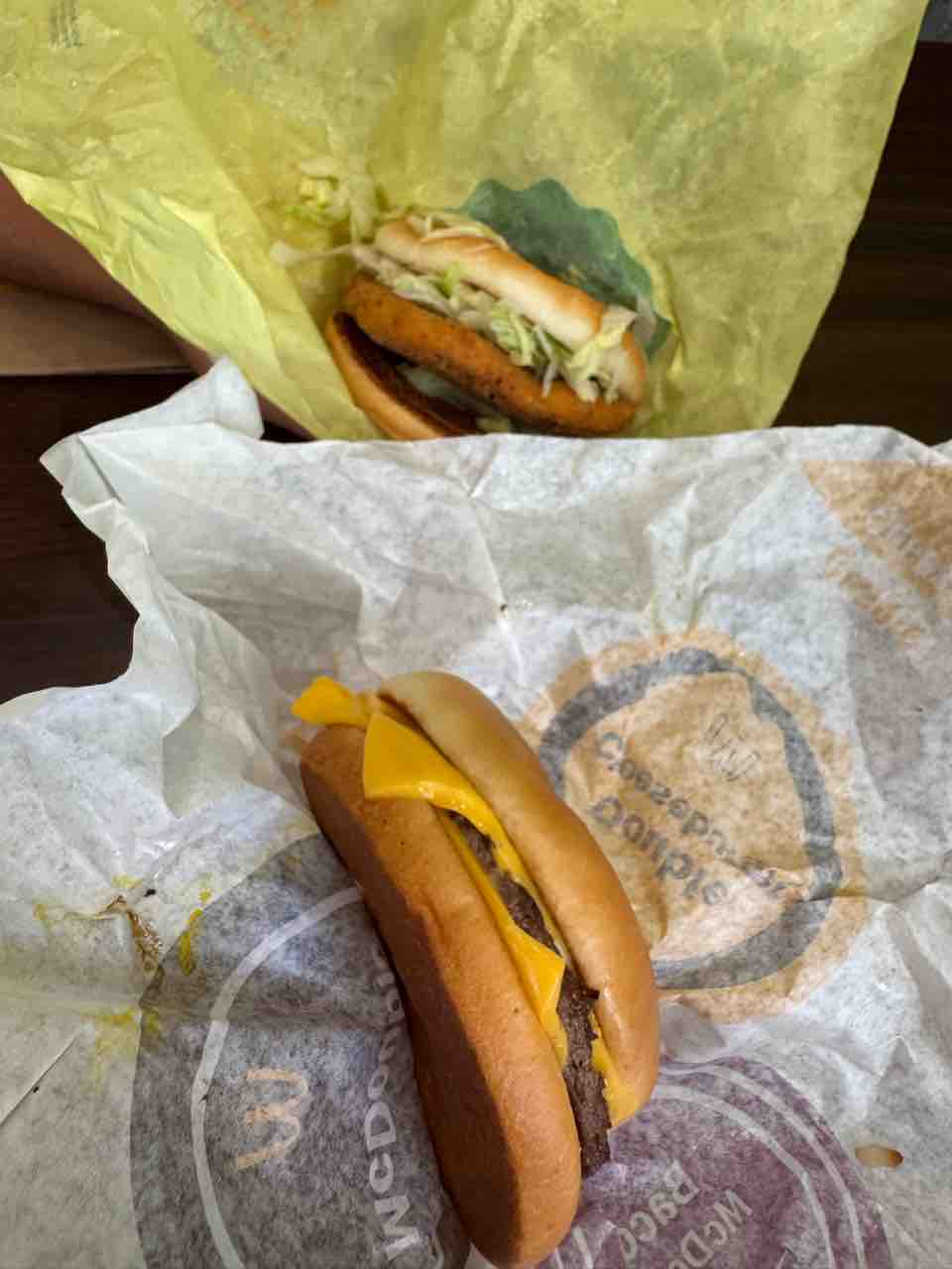 ダブルチーズバーガーとマックチキン。