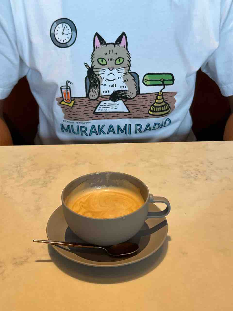 夫に貸してあげた、村上春樹の猫Tシャツかわいいな