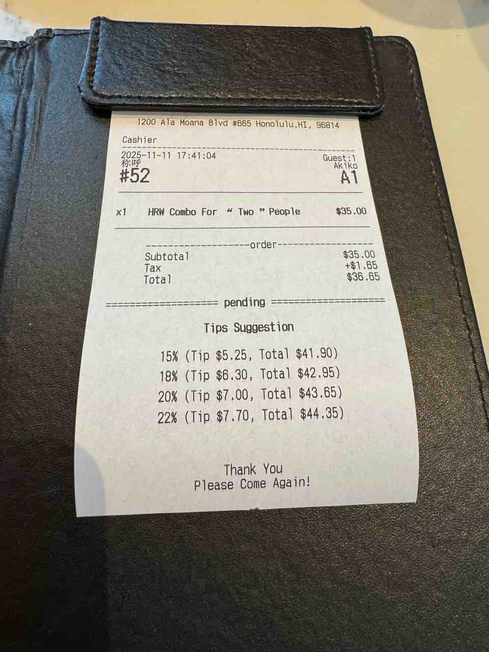 チップまで入れると40ドルちょいって感じで、2人で食べてこの値段なら全然あり👏