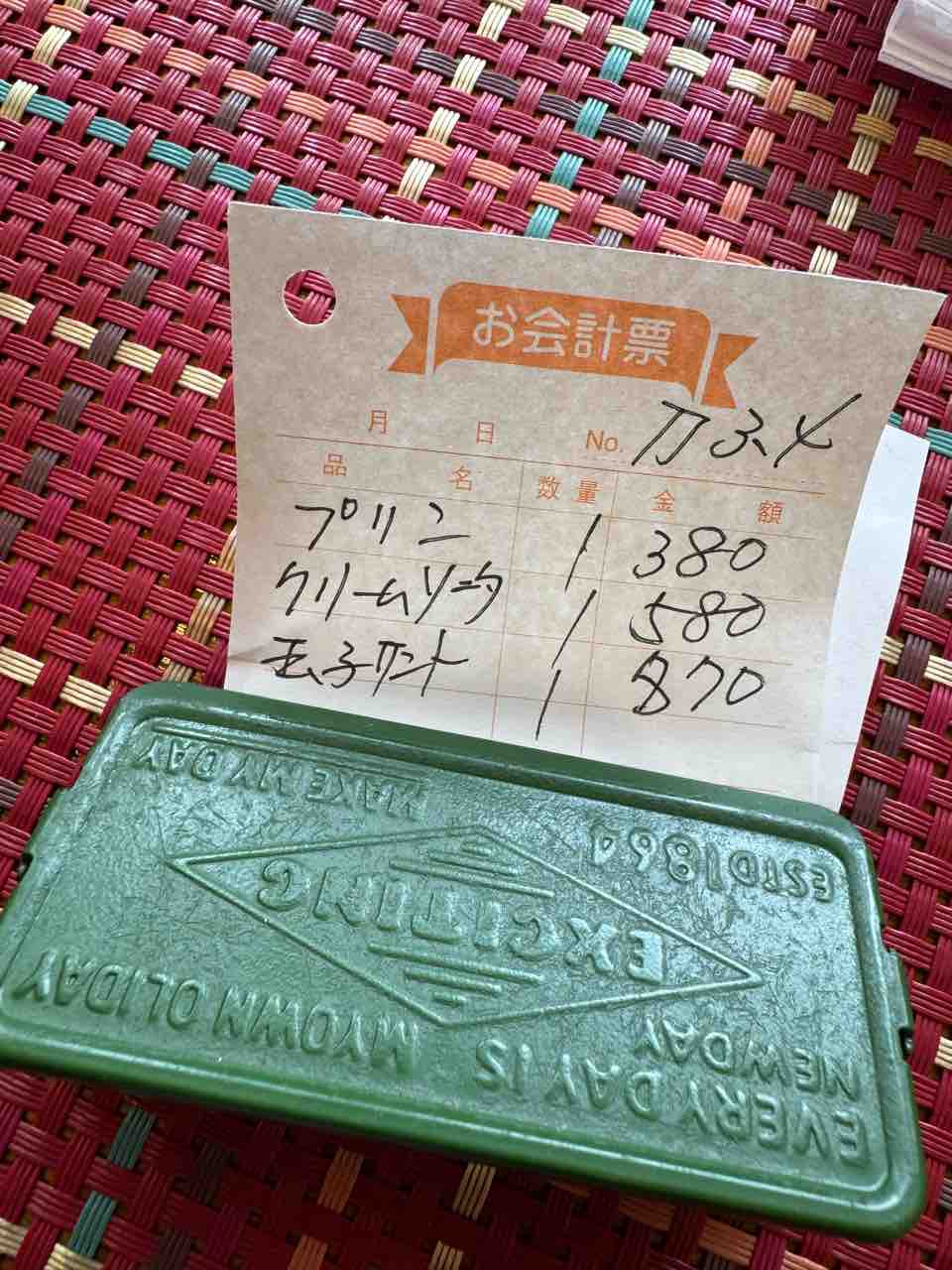 メロンソーダと「だし巻き屋のカスタードプリン」。