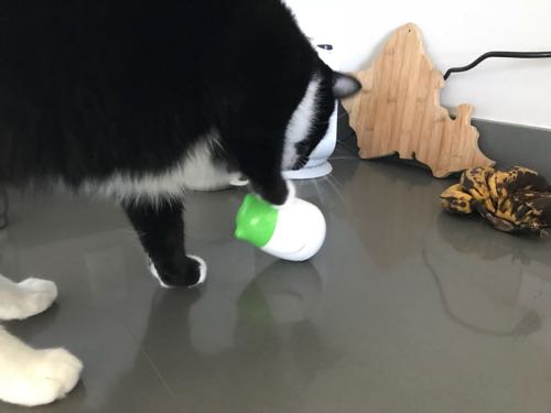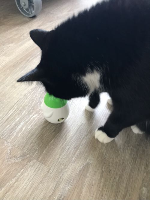 先生のおすすめで、こういう倒すとおやつが出てくるやつにゴハンを入れると、ゆっくり食べるとのこと。
