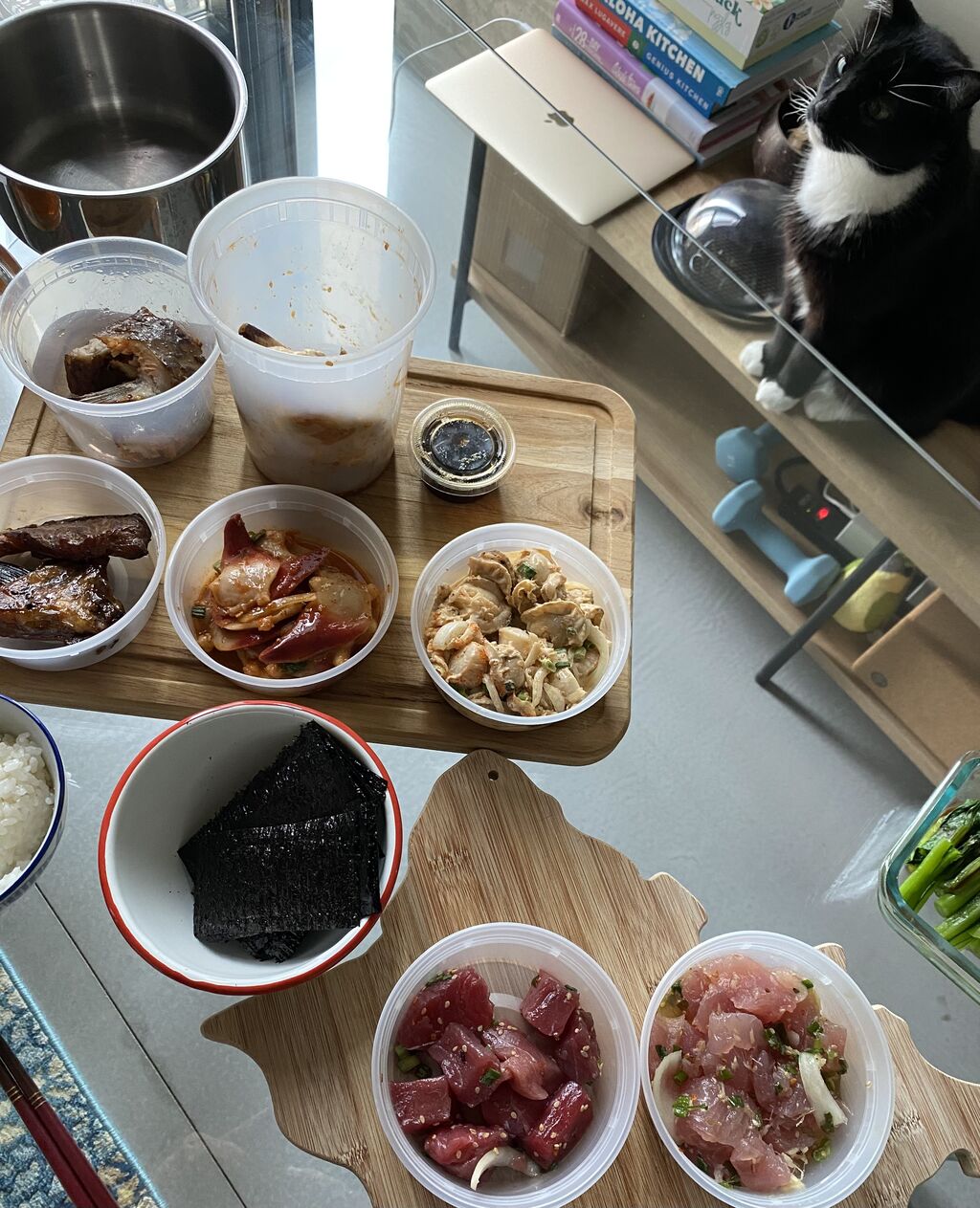 昨日のポケディナー。夫が一人で買いに行ったら、あれもこれ持ってたのんですごい量🤣