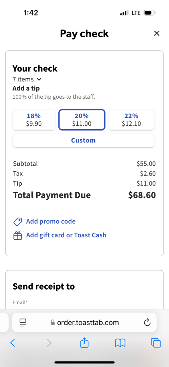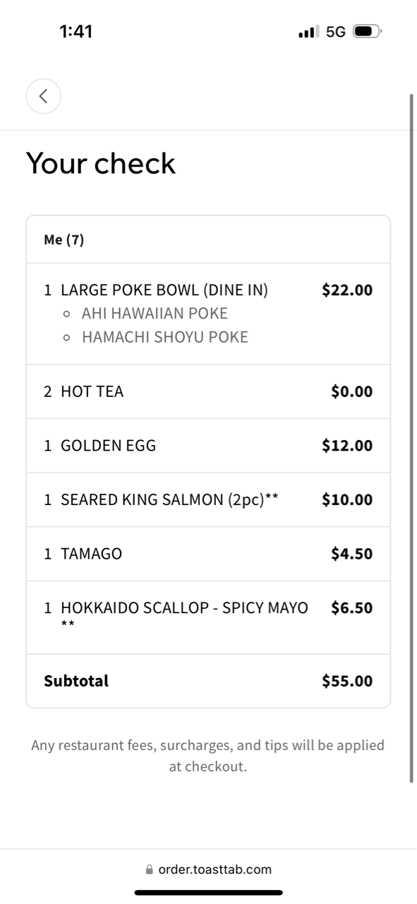 それから2人で違うQRコードで注文して2つのチェックだと10ドルずつクレジットがもらえるはず!