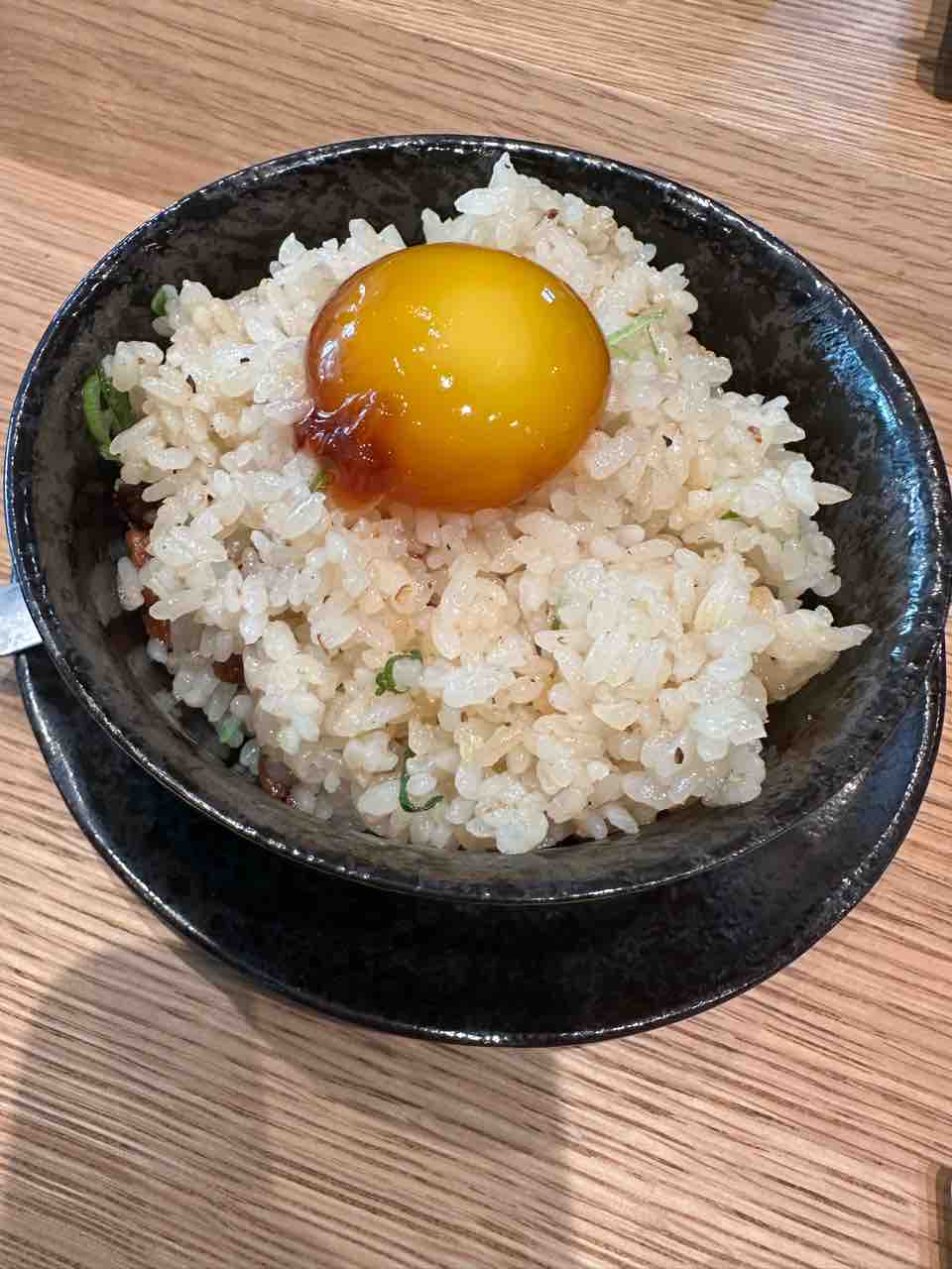 卵で〆!(ご飯がこぼれ落ちている)