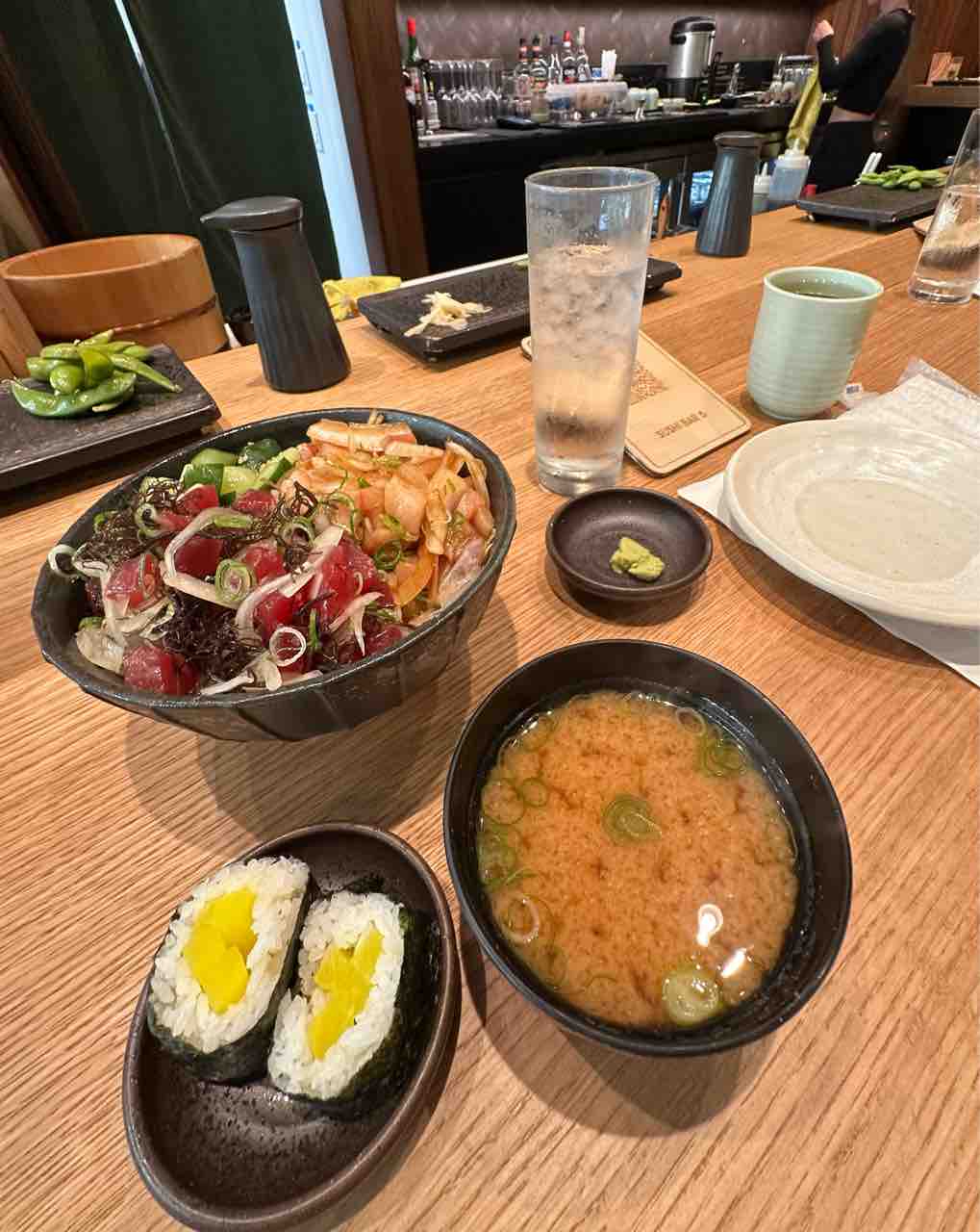 お味噌汁とたくあんの巻き寿司もついてきて嬉しい。