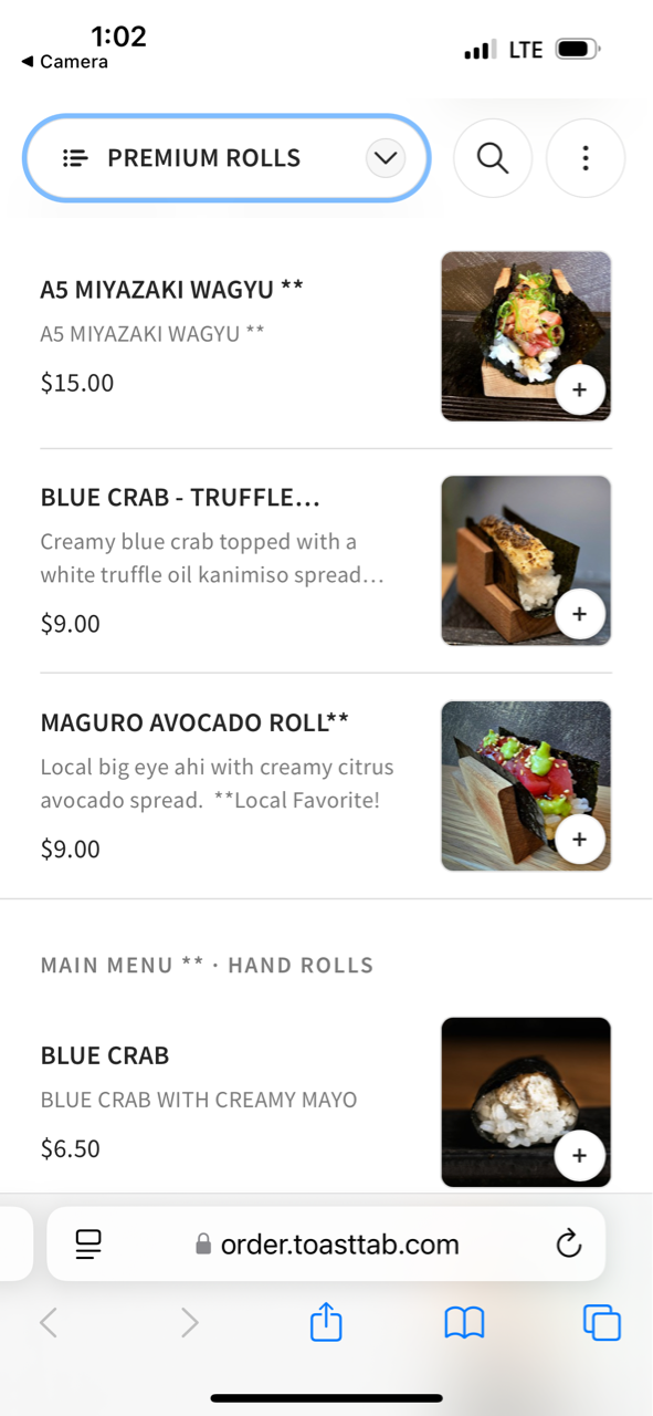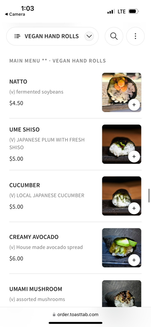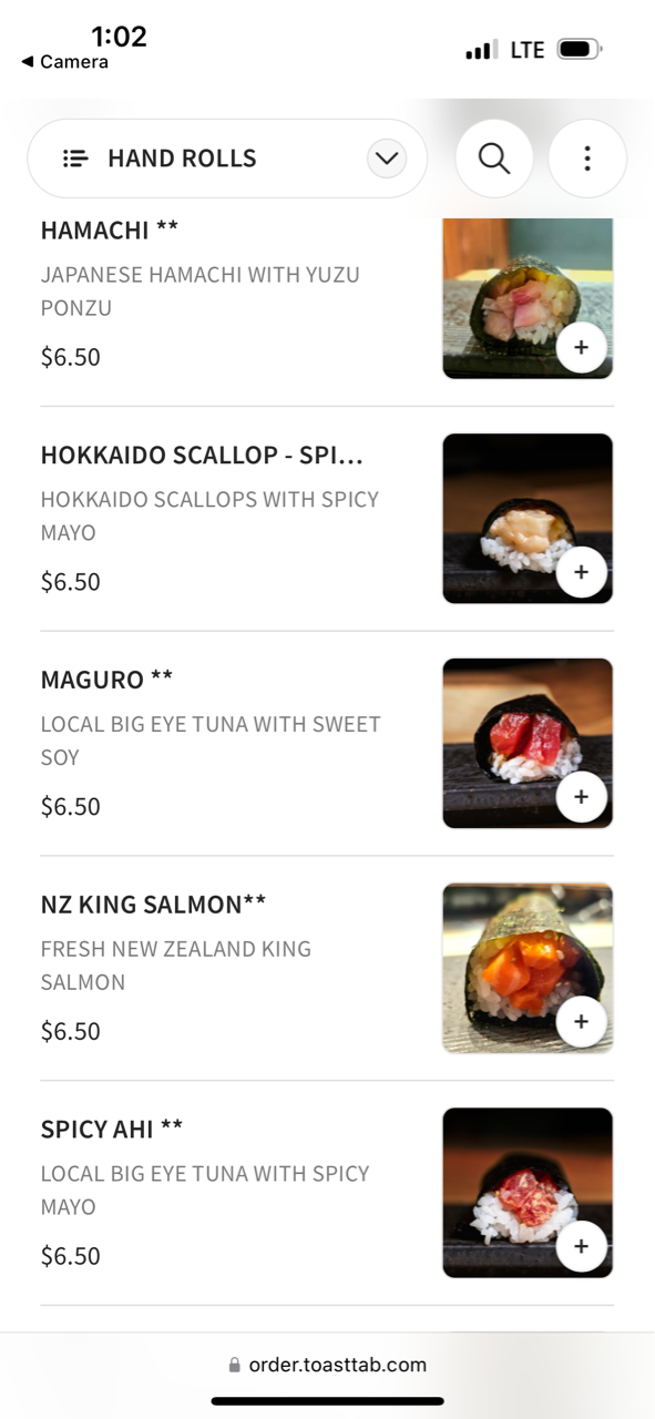 巻き寿司とはまた違う、手巻き寿司ともちょっと違う、ハンドロールがメインメニュー。
