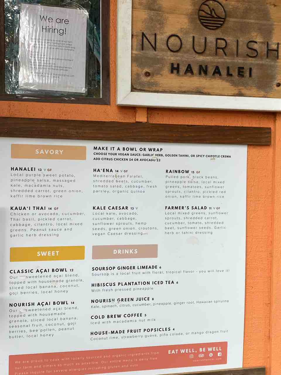 カウアイ島のハナレイのちょっと逸れた道の奥にある、Nourish Hanalei(ナリッシュ・ハナレイ)。