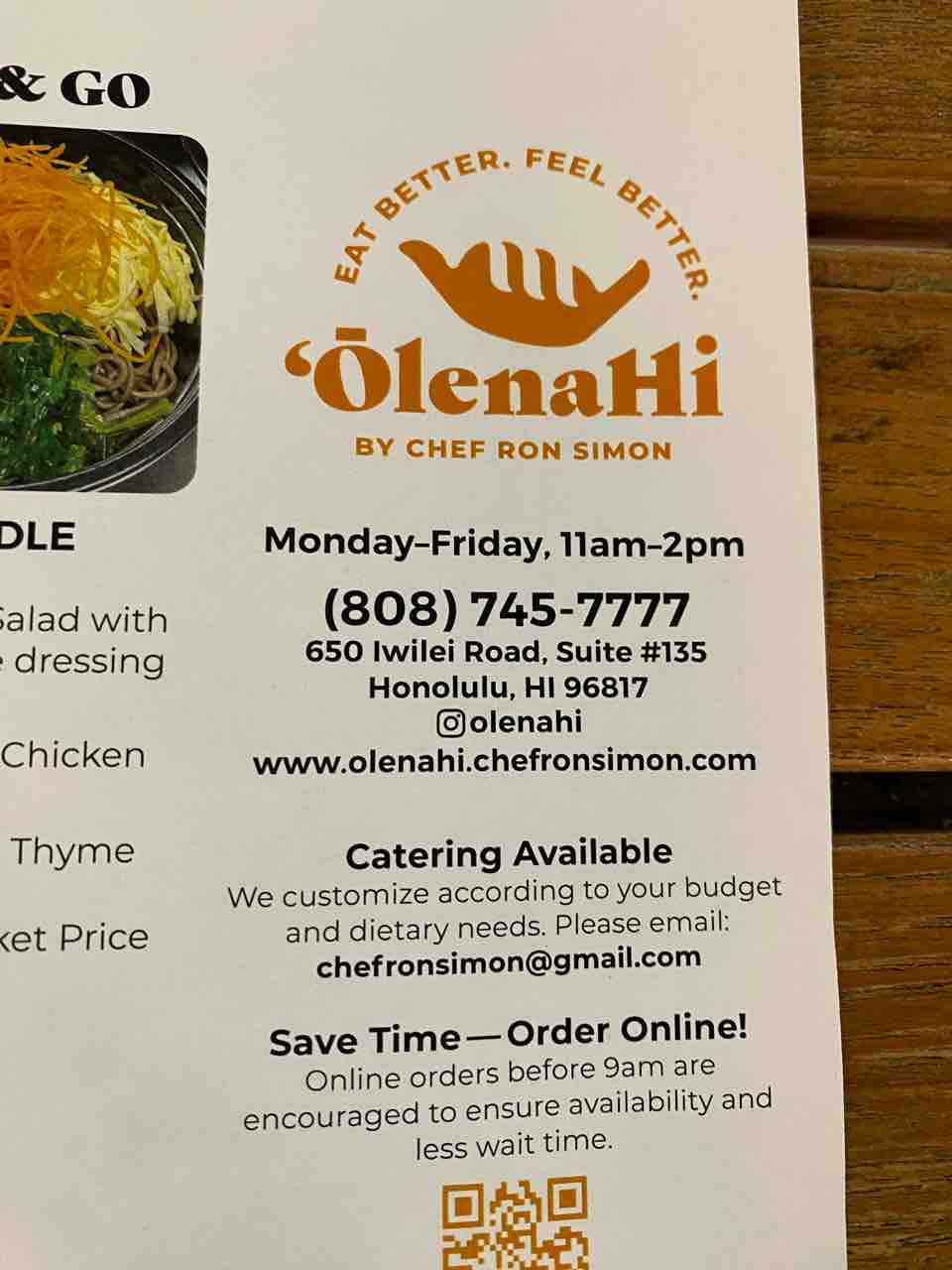 Webサイト▶︎‘Ōlena Hi by Chef Ron Simon