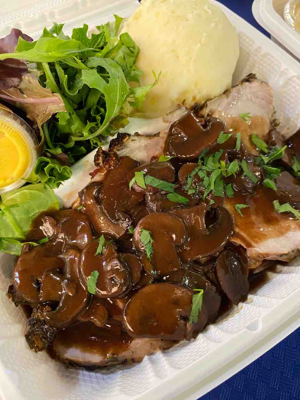 マッシュルームソースがすごい好み。マッシュドポテト、クリーミー!