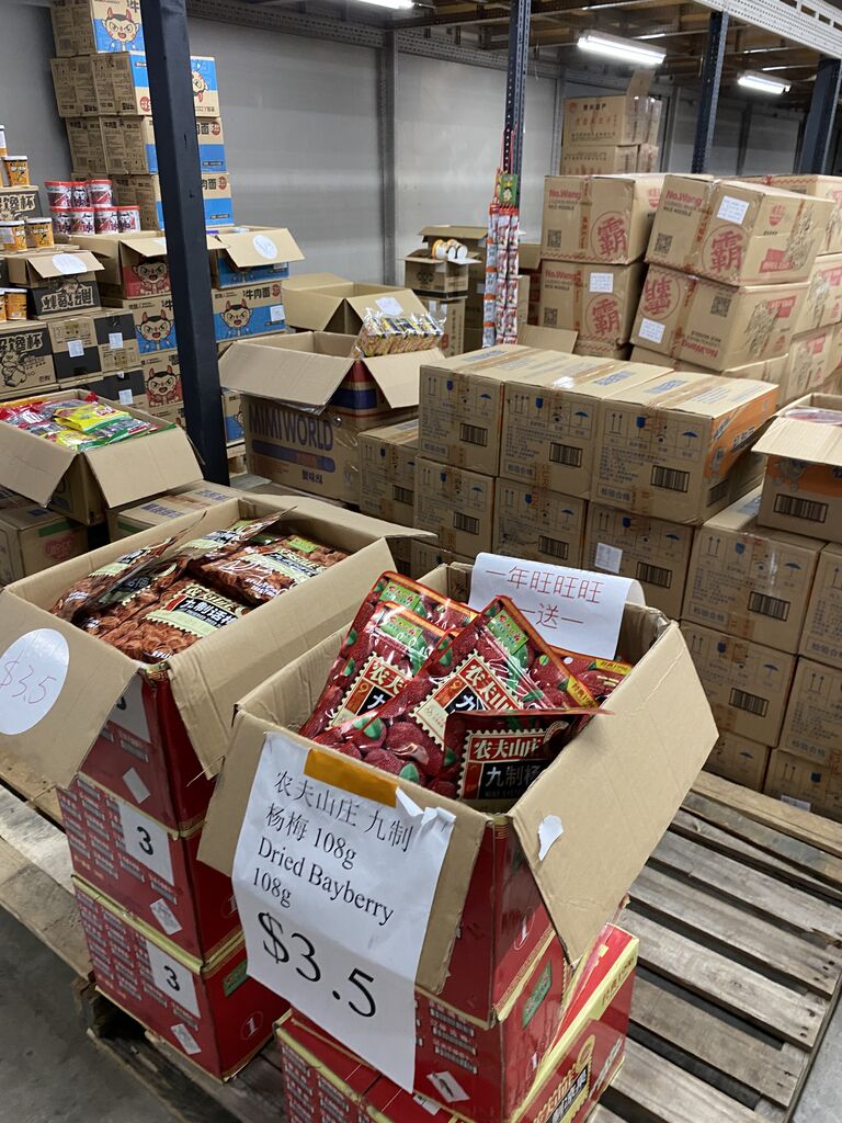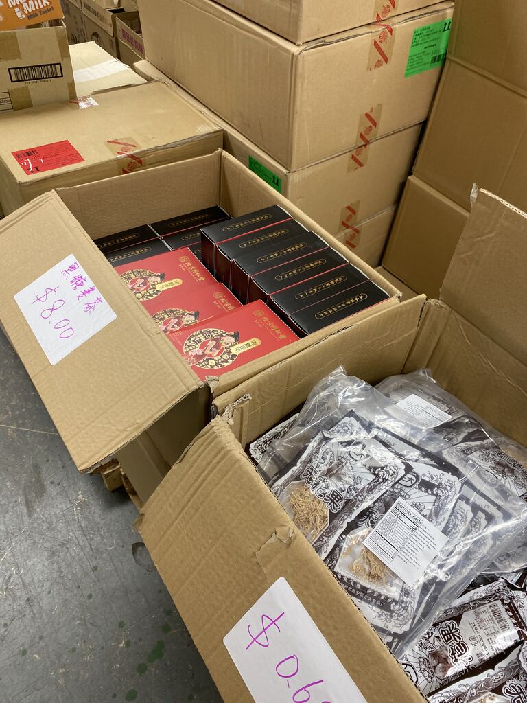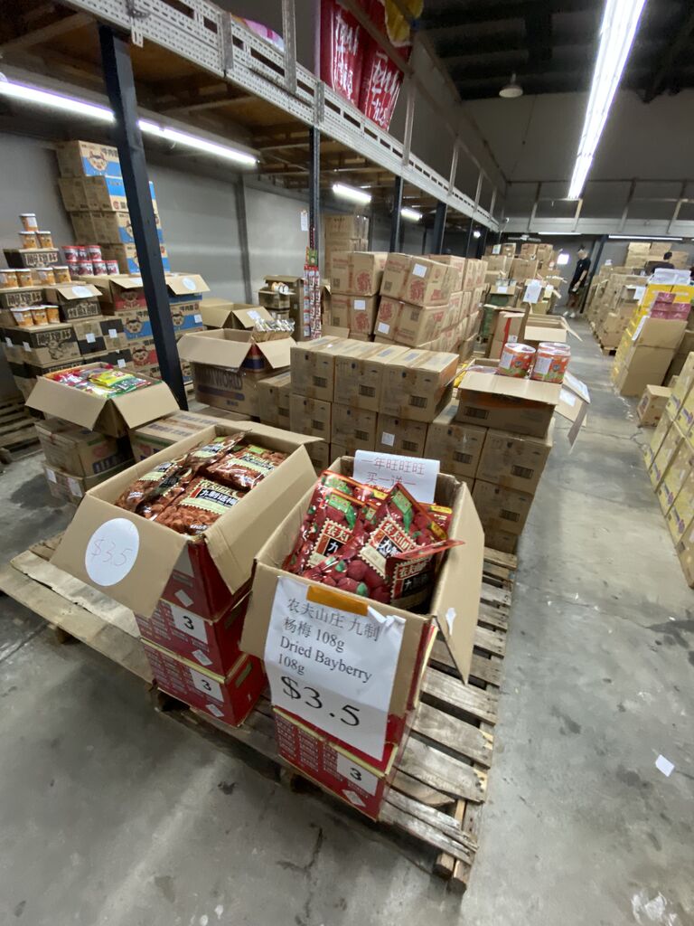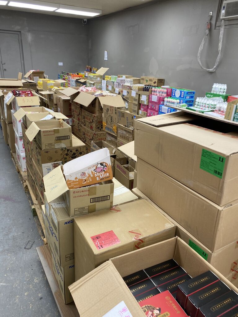 お店の中はズラリと段ボールに入った食品が並んでまして