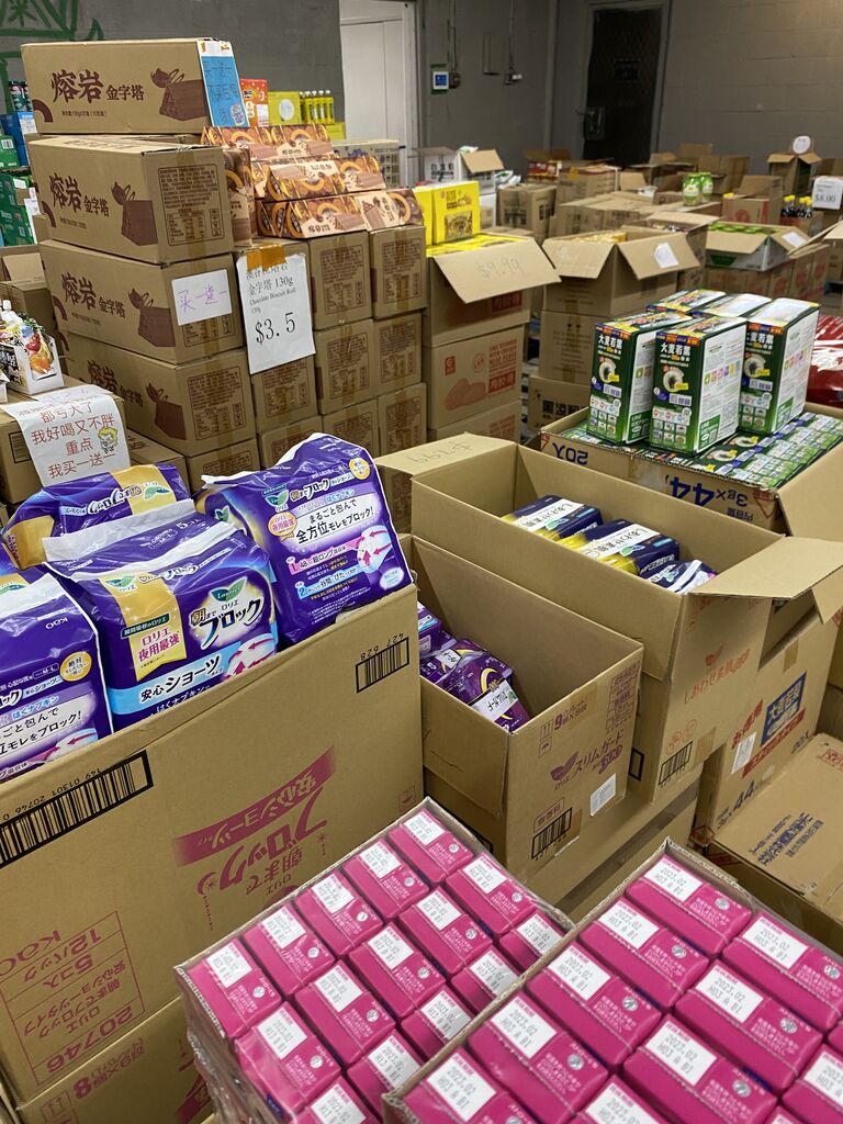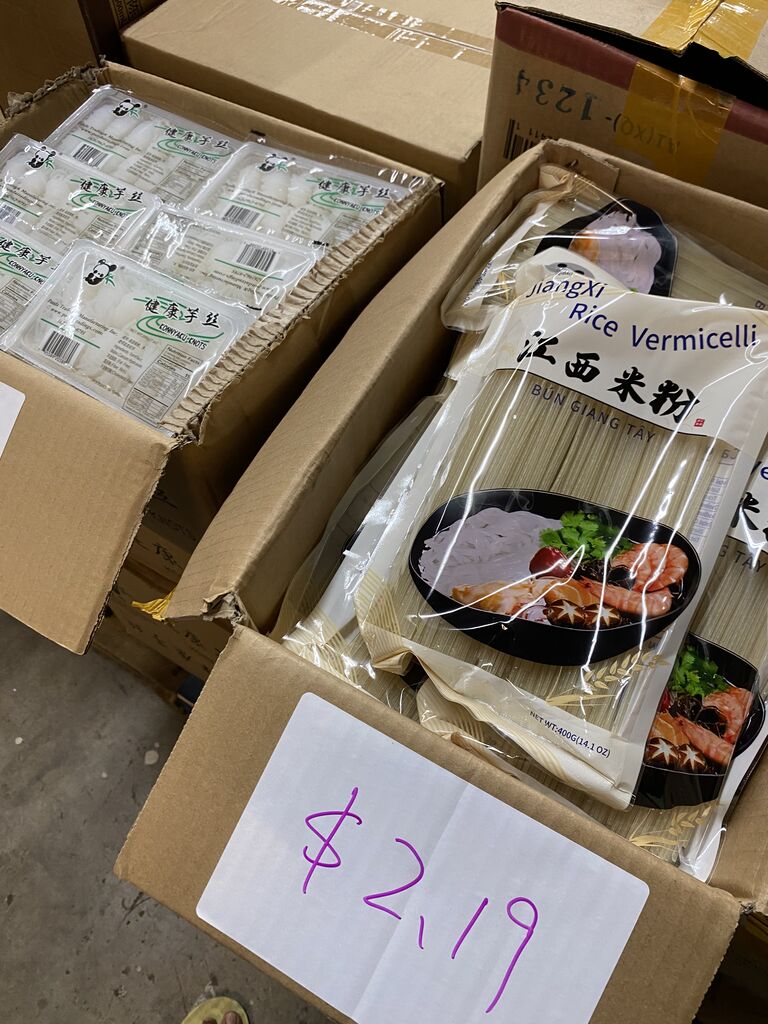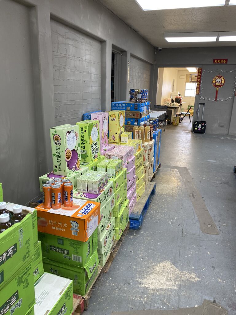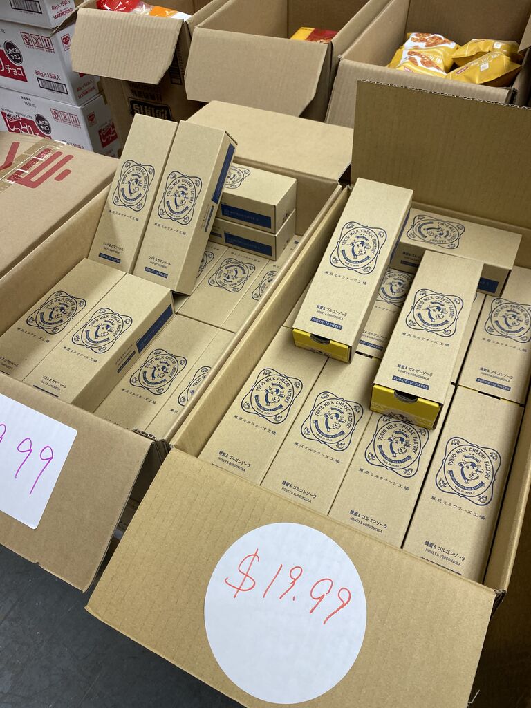 お店の中はズラリと段ボールに入った食品が並んでまして
