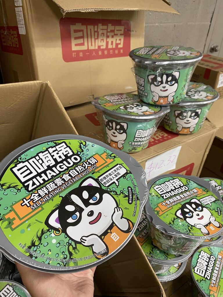セルフヒーティングホットポットだって〜!新幹線の中のお弁当のやつみたいな感じ?