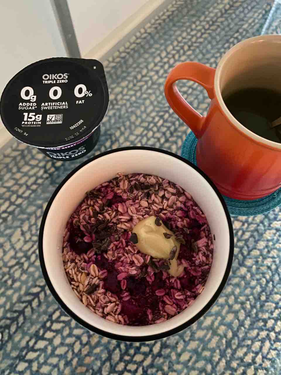 生蜂蜜やカカオニブを入れて食べました。タンパク質が足りないのでギリシャヨーグルトとともに。