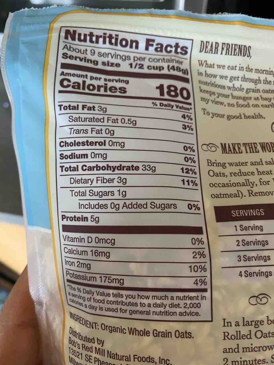 ホールフーズで買ってきた、ボブズレッドミルのオーガニックオートミール。