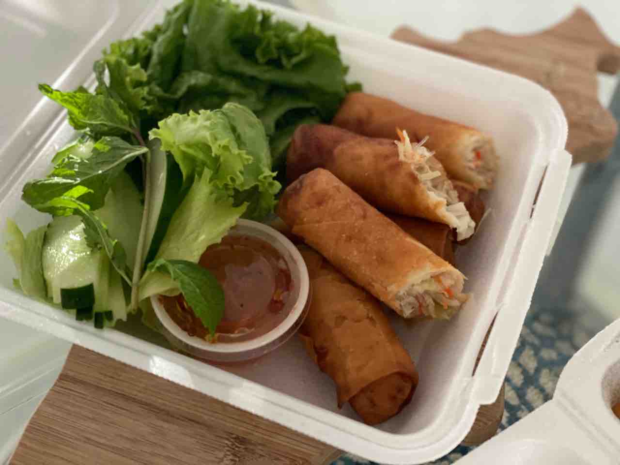 チキン春巻きは、皮が春巻きの皮なのですね。生春巻きの皮じゃないのは残念〜!でも美味しい!