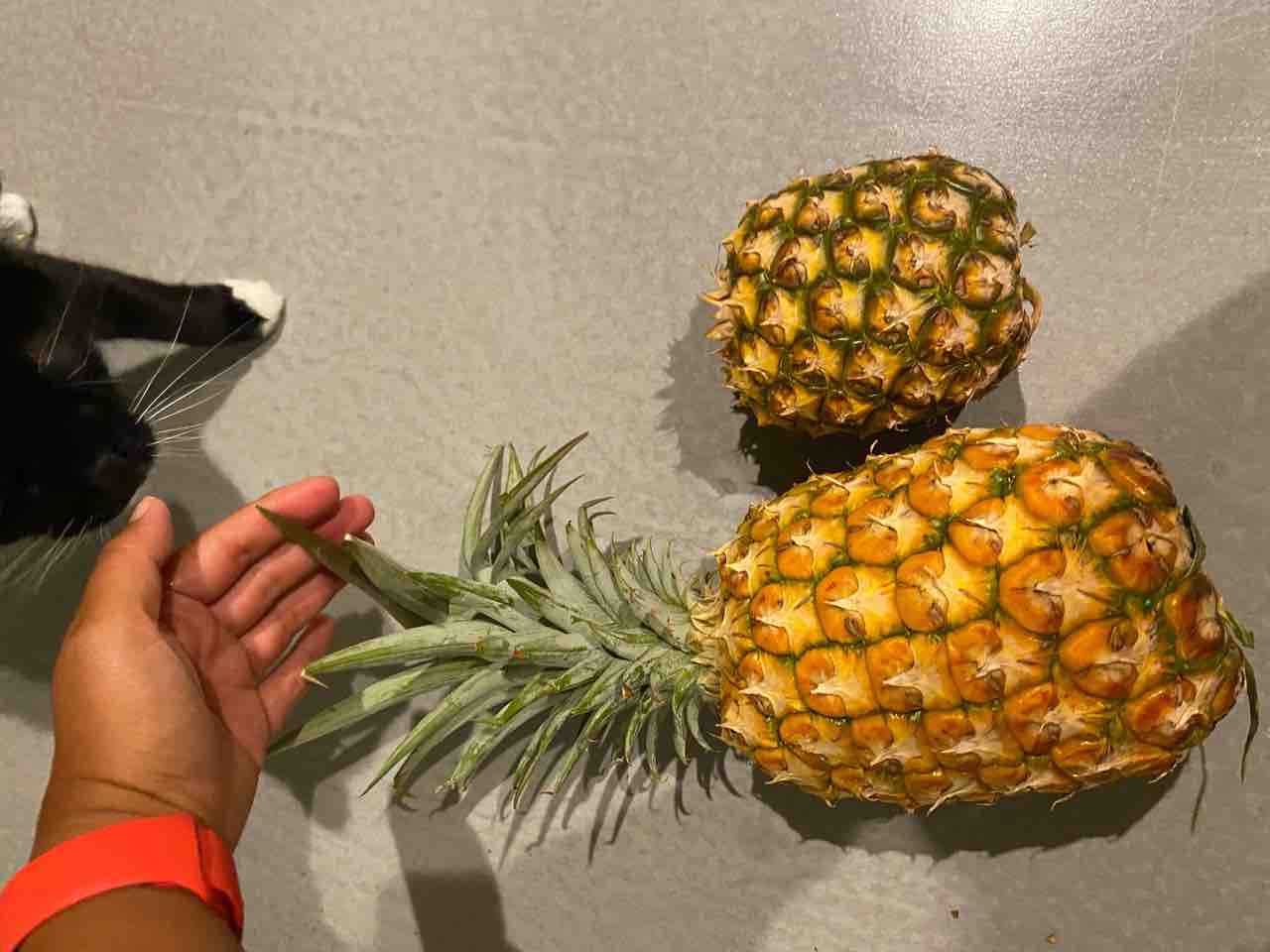 (たま様、パイナップルの頭の部分齧るのが好き)