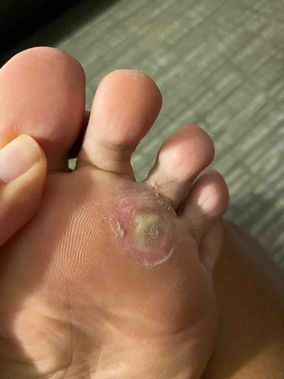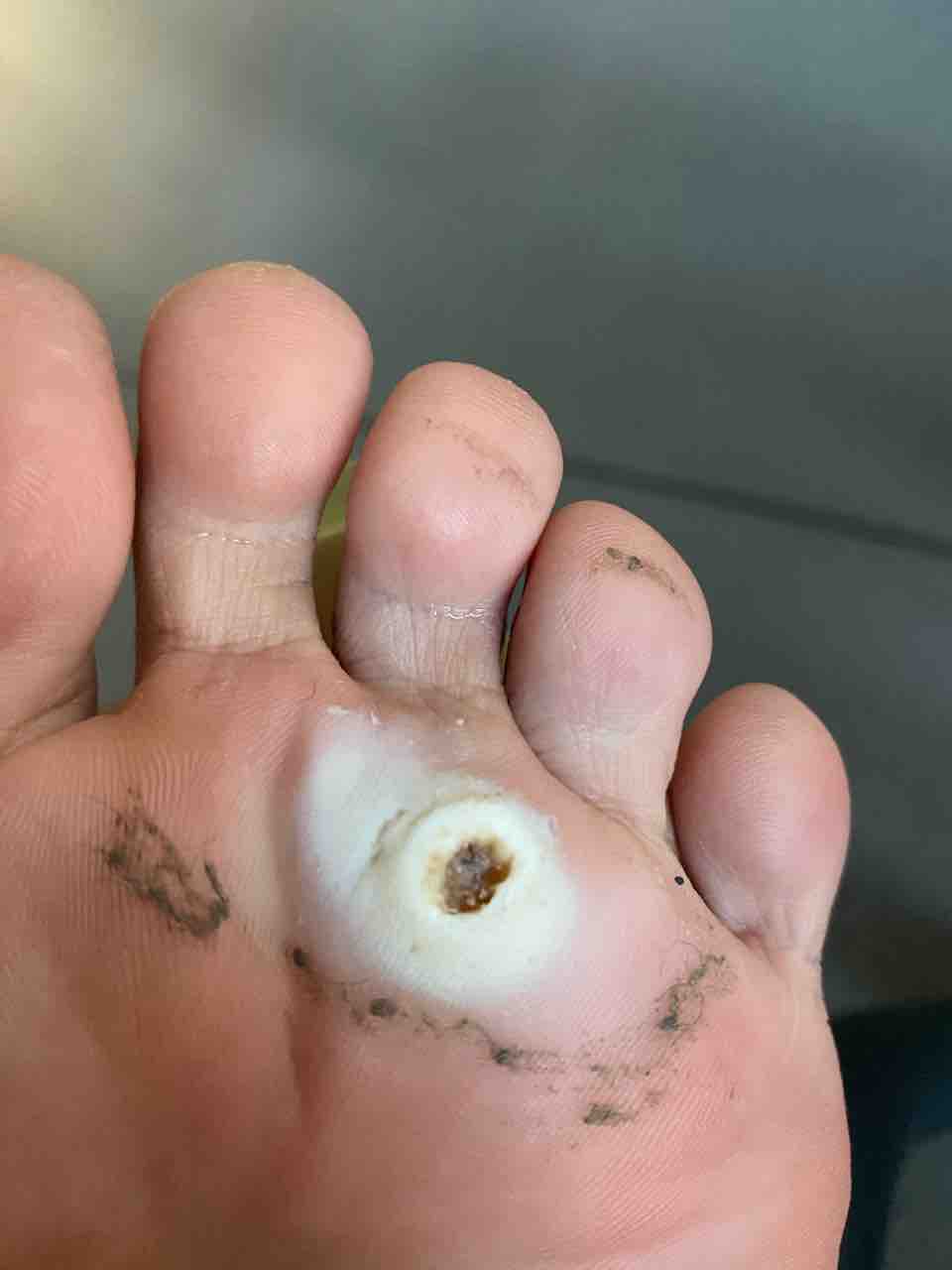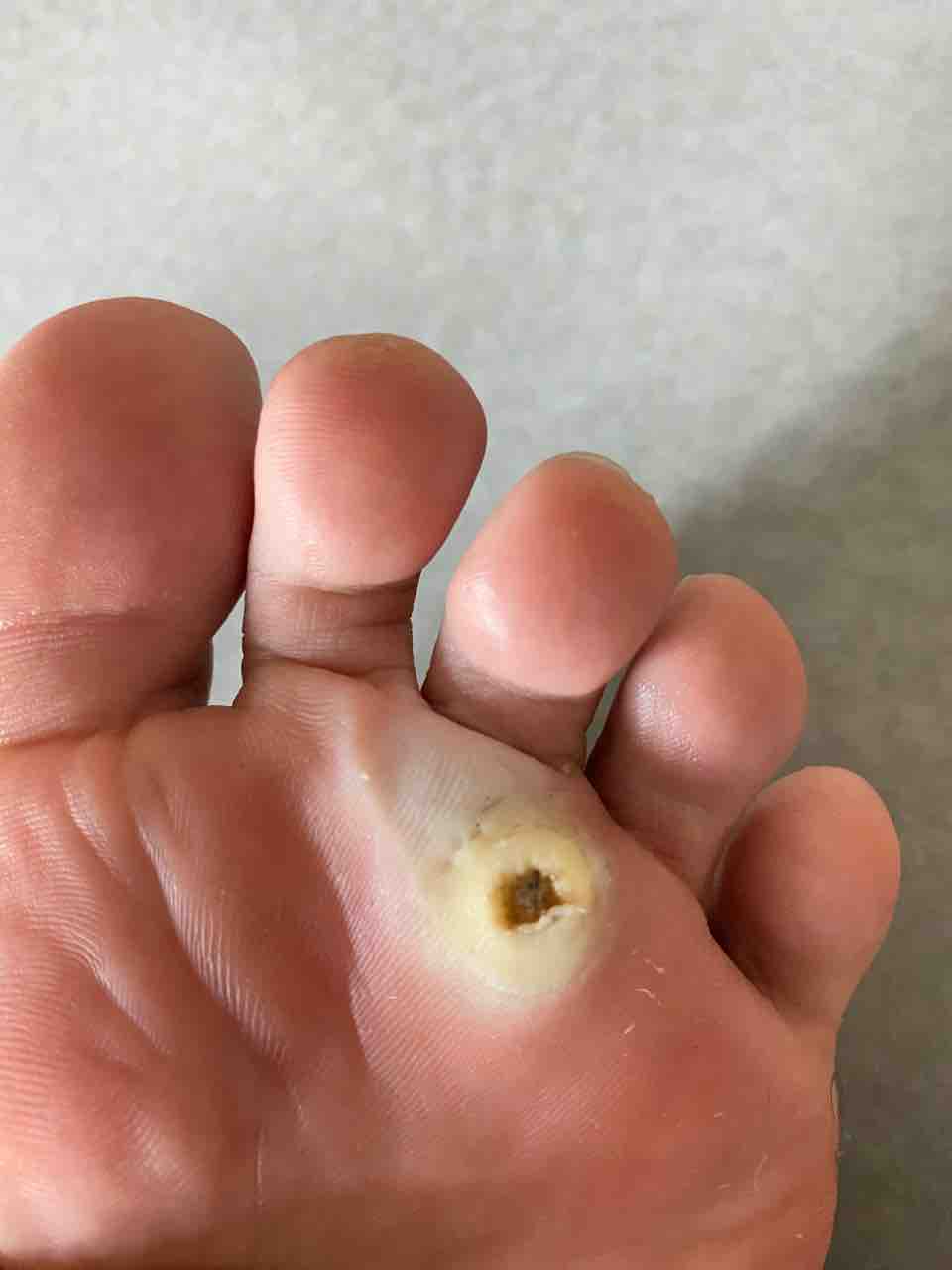 周りは盛り上がって硬くなってて、歩いたり爪先立ちすると、ちょっと痛かったのです。