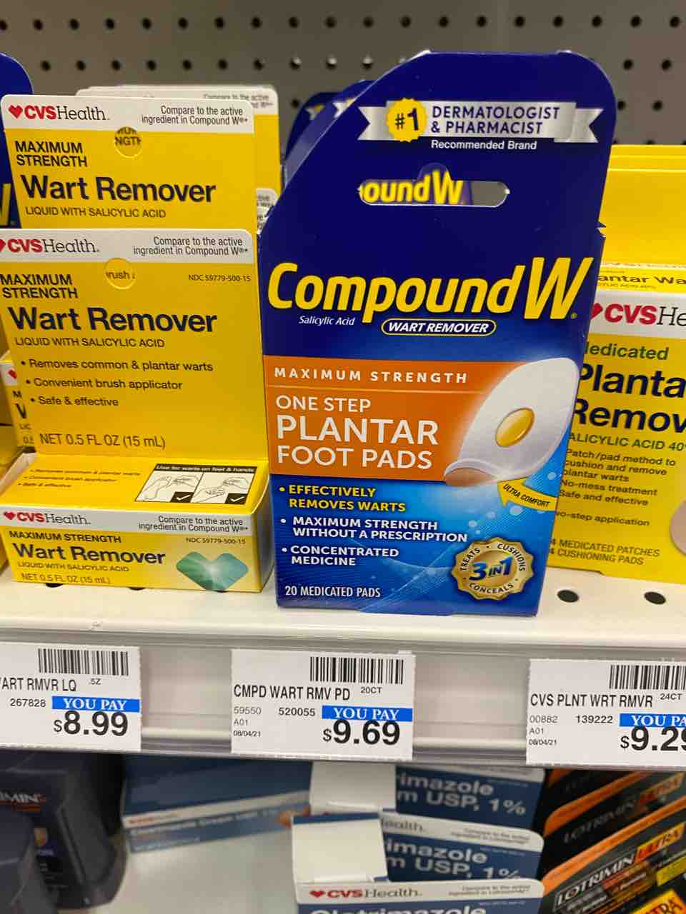 私は魚の目だと思ってたので、この辺りを買おうと思ってたんだけれど、夫にPlanter Wartじゃない?と言われたので、wart(いぼ)の治療薬を購入することに。