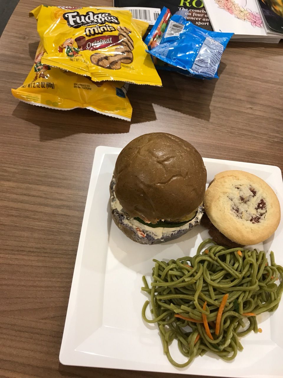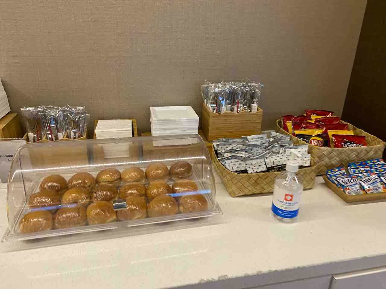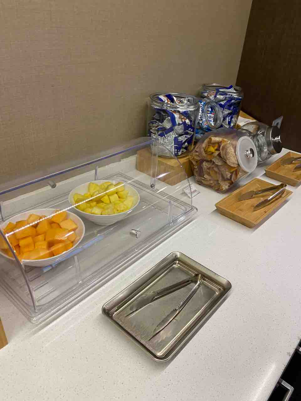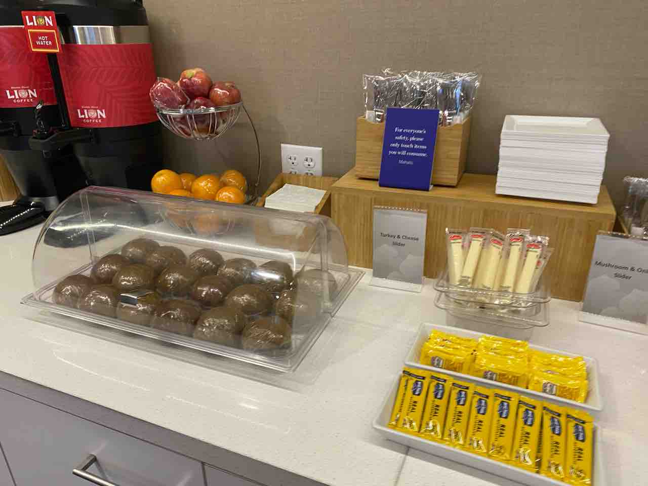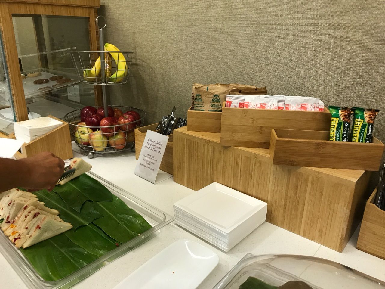 今回もLYFTが早く来て、ちょっと早めにラウンジ到着。朝ごはん。調子に乗って食べまくる。ホールフーズで売ってる、気になってたサワードウクラッカーがあって嬉しい!フムスとかもありました。