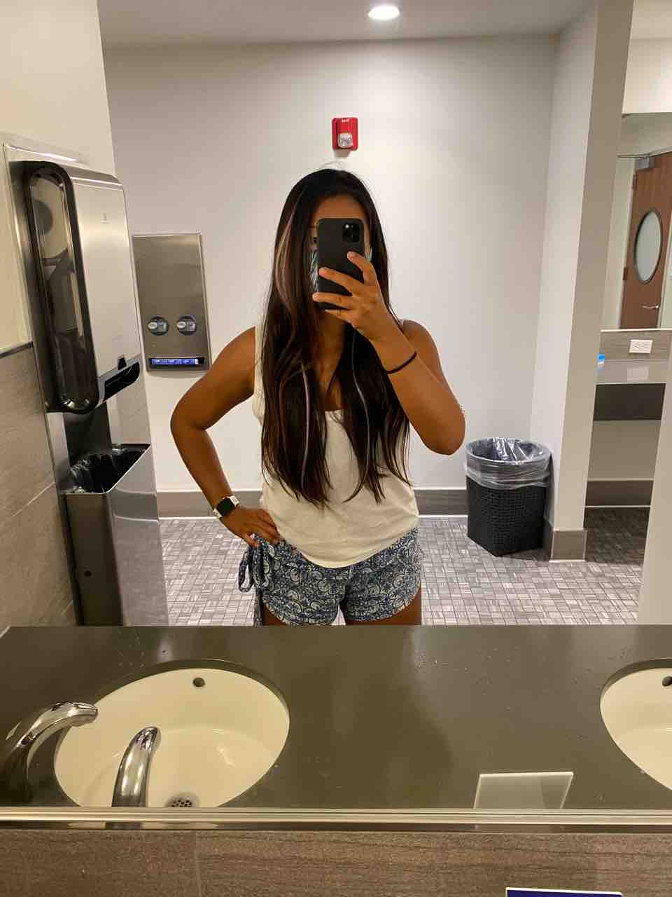 ミラーセルフィーを撮ってみる。あんまりトイレの使用者がいなくて、ゆっくり歯磨きしたりできました。