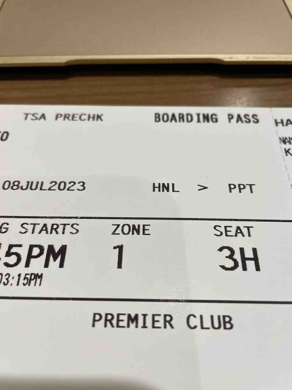 搭乗券に書いてあるのはPremier Club(プレミアクラブ)だった!!!