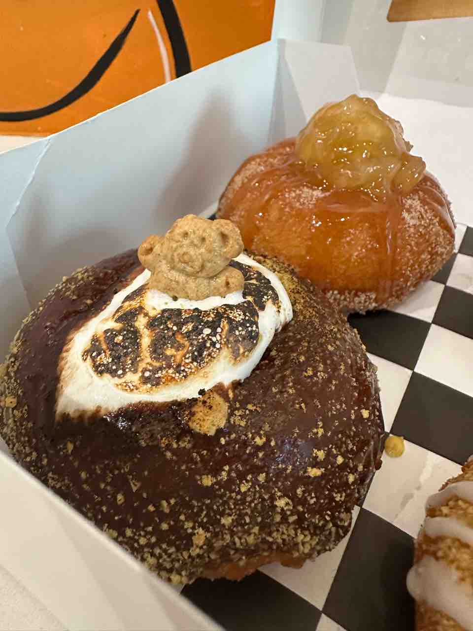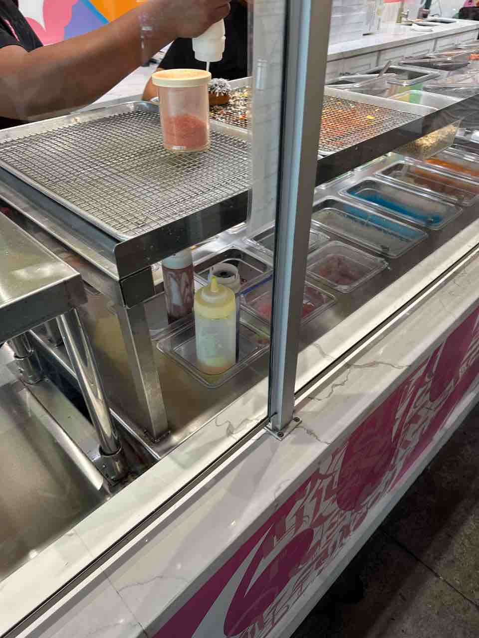 レジで支払うと(ちなみにApple Pay使えるよ)、目の前で仕上げてくれます。目の前でガスバーナーでマシュマロ炙ってくれたり、パイナップルの表面をクレームブリュレみたいにパリッとさせてくれたり。