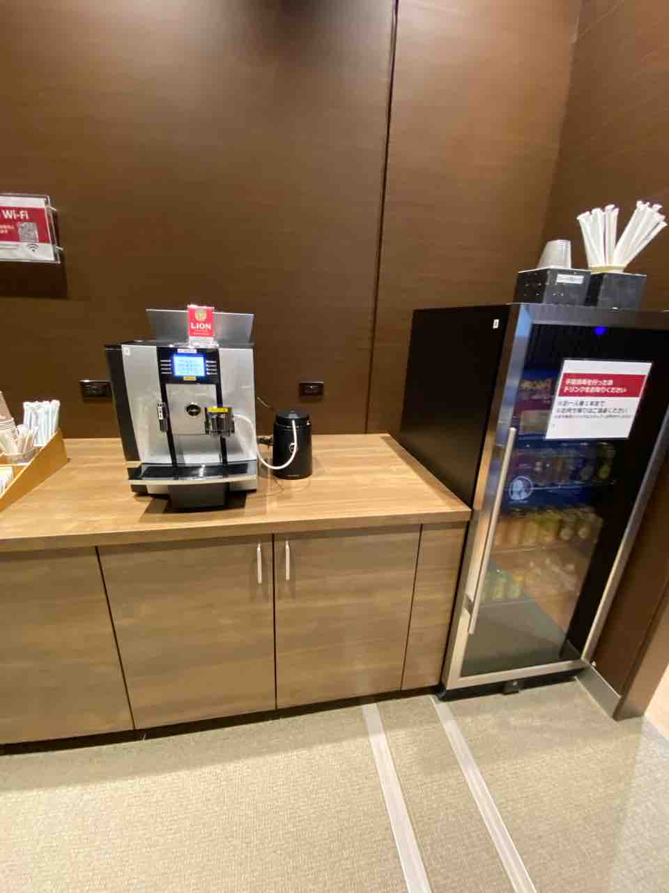 コーヒーマシーンに、冷たい飲み物。