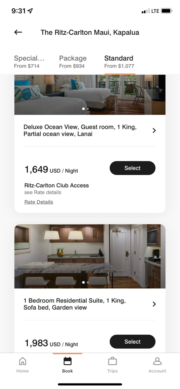 夫のマリオットBonvoyのホテルポイント(リッツカールトンはマリオット系列)で予約+クラブラウンジへのアップグレードに300ドル払いました。