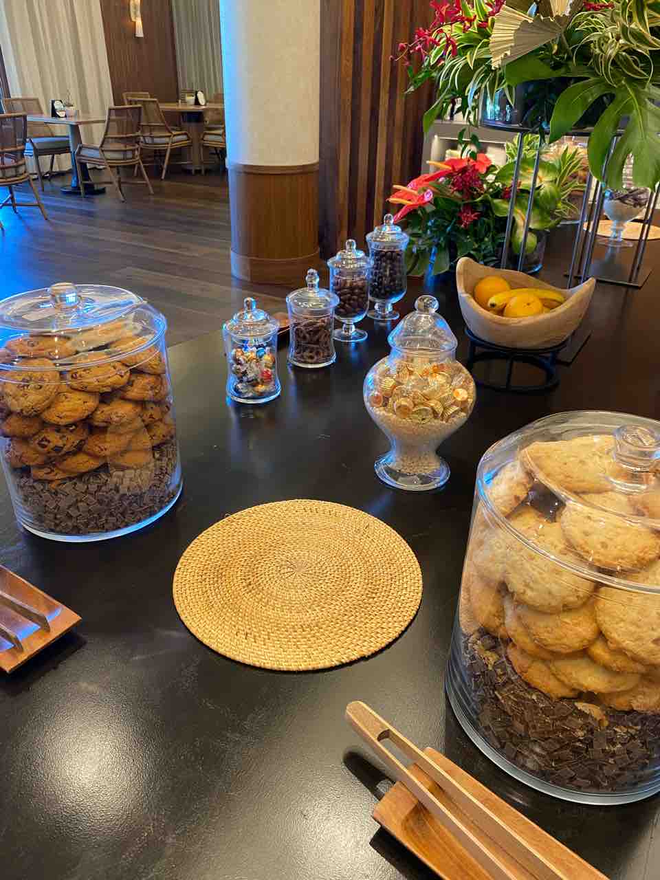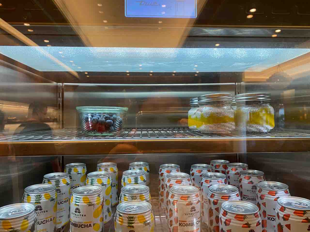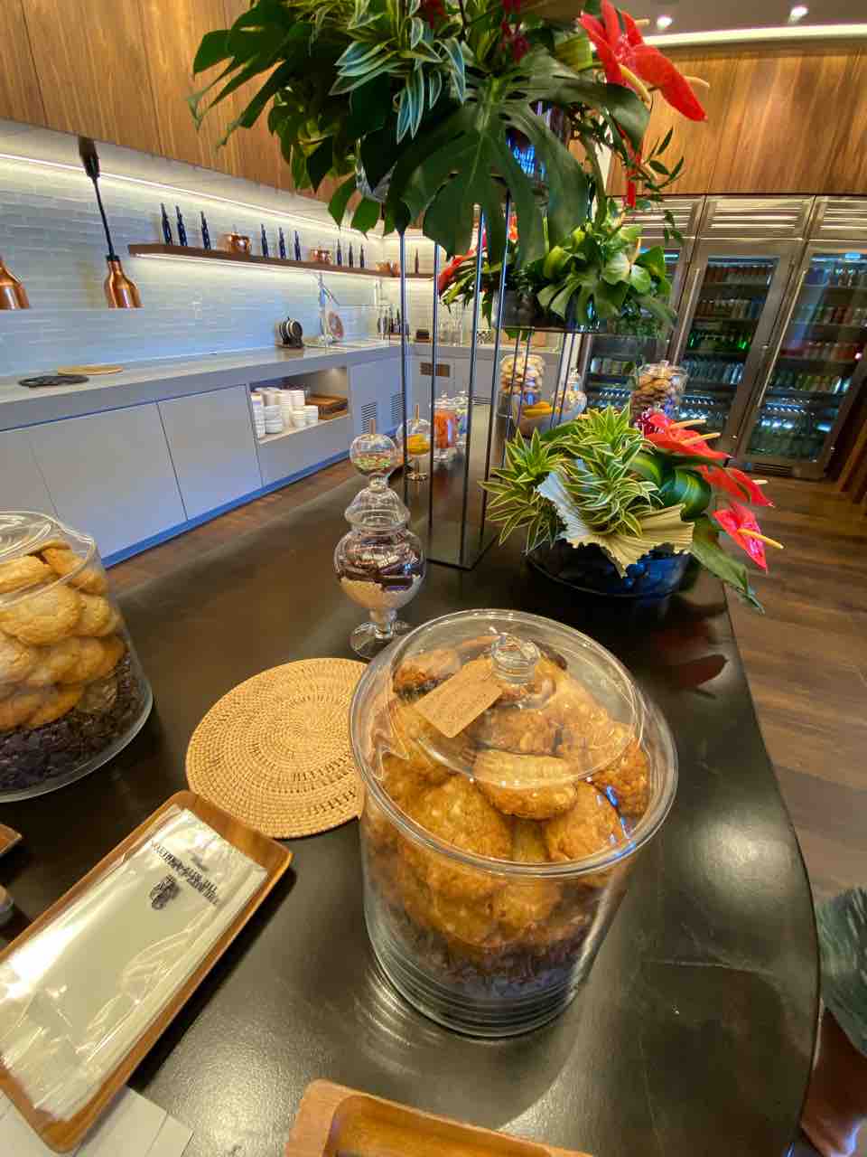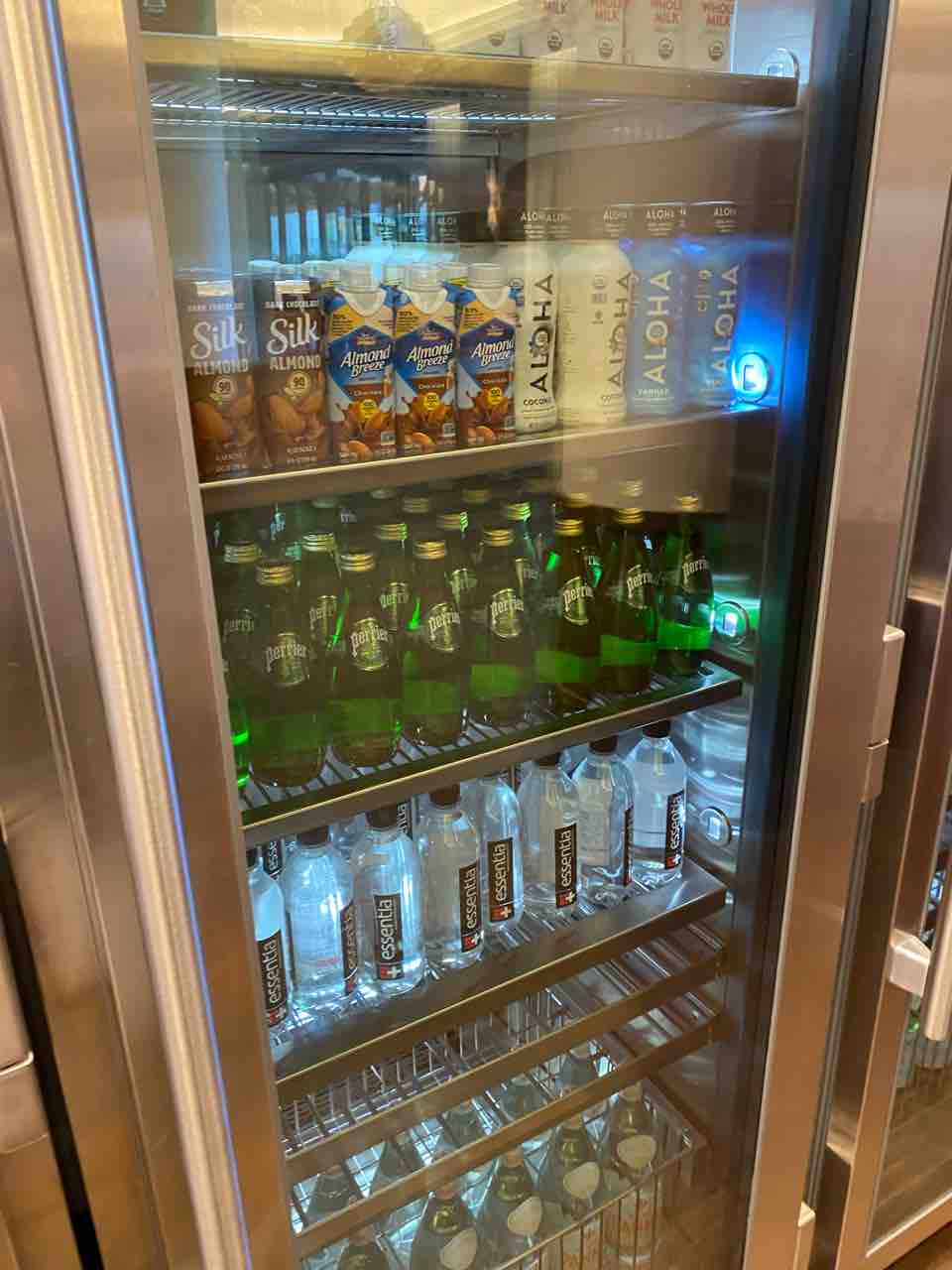 ラウンジが閉まっている間は24時間アクセス可能な小部屋があって、そこに飲み物やお菓子、フルーツ、ネスプレッソのポッドなどがたくさん置いてあってお部屋に持ち帰り可能でした。