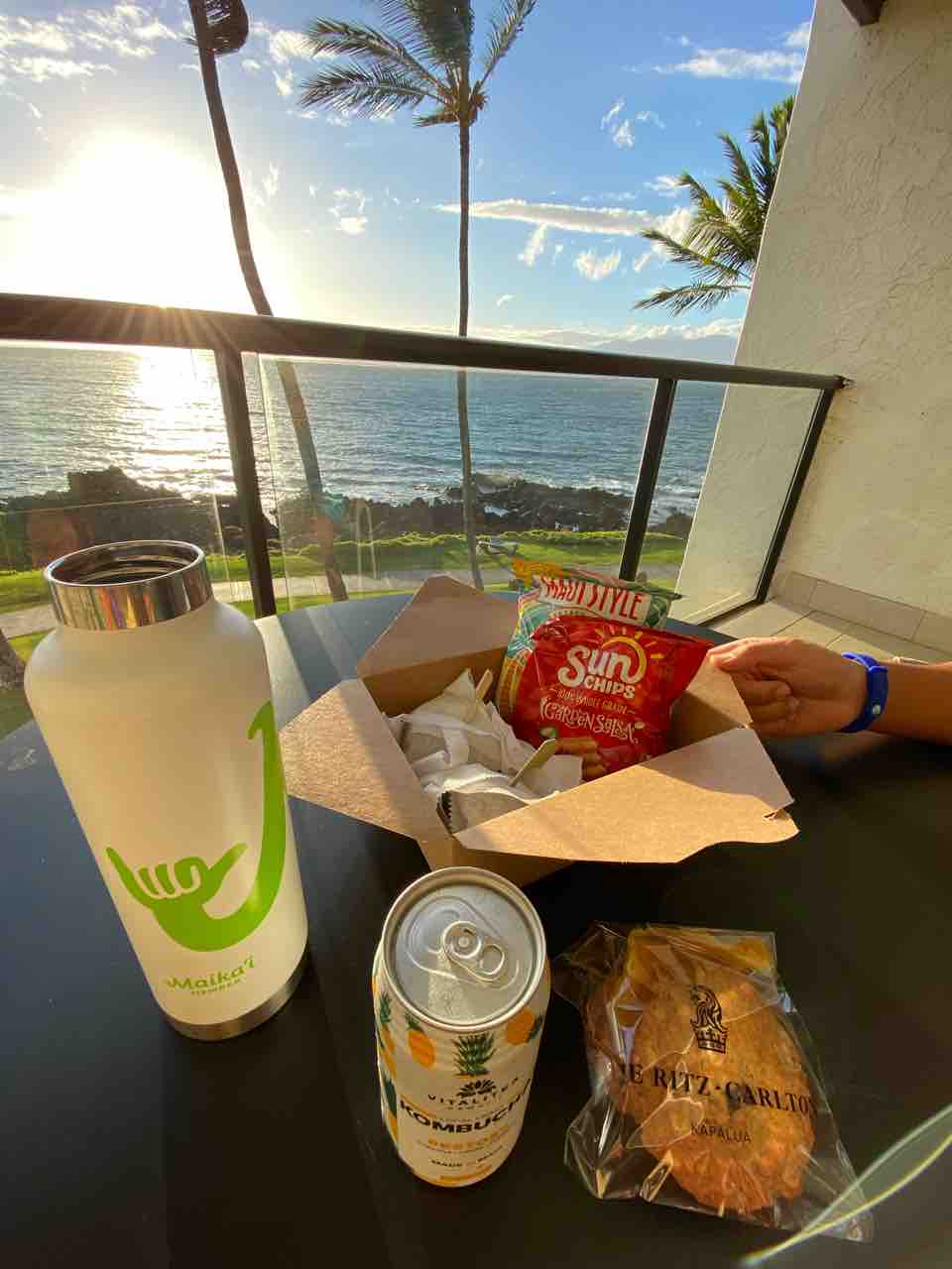 翌日は違うホテルに移ったのだけれどその時にお土産も持たせてくれたので移動した先のホテルでサンセットを見ながら詰めてくれたサンドイッチなどを食す。