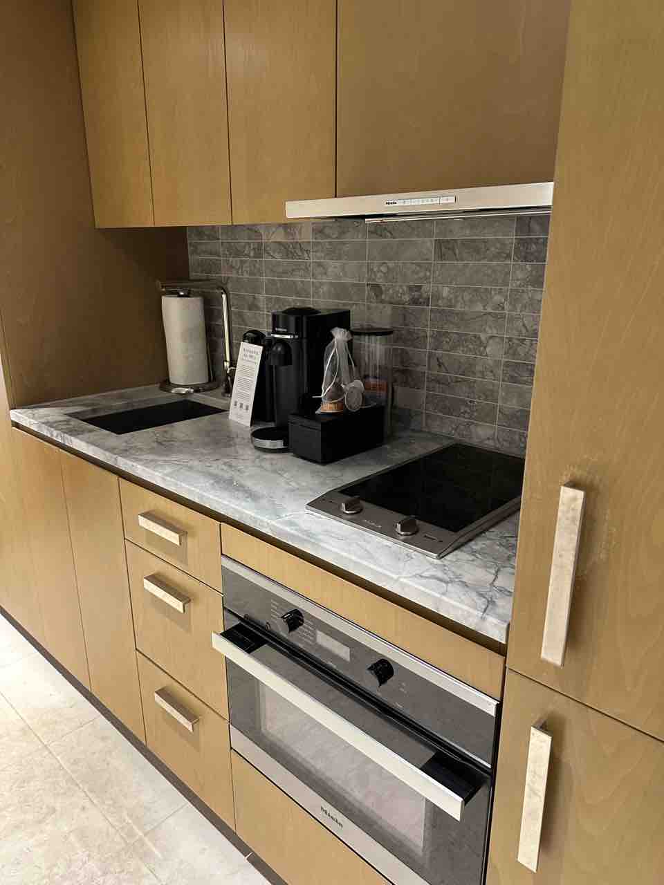 キッチンは小さいけれどオーブンもあってネスプレッソもあるし本格的。
