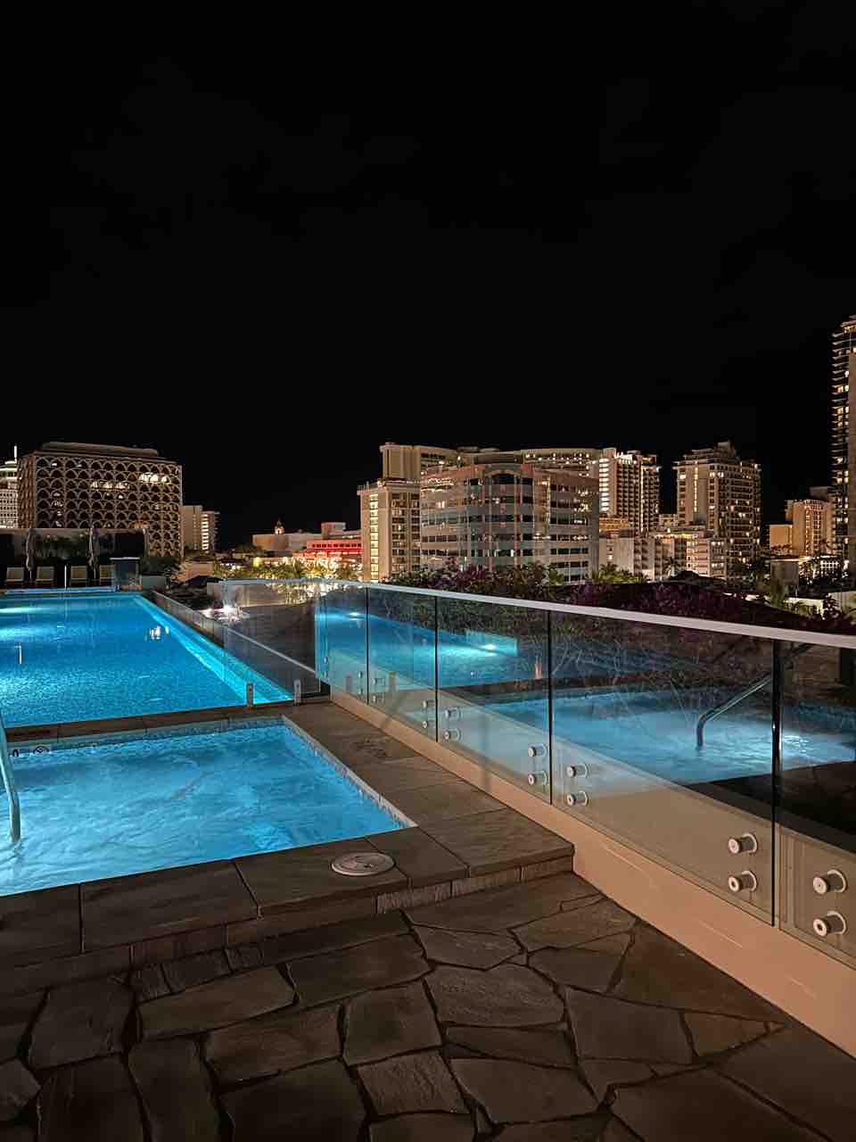 夜のジャグジーは、目の前のレストラン(La vie)からピアノのライブミュージックが聞こえてくるのでとってもリッチな気分。