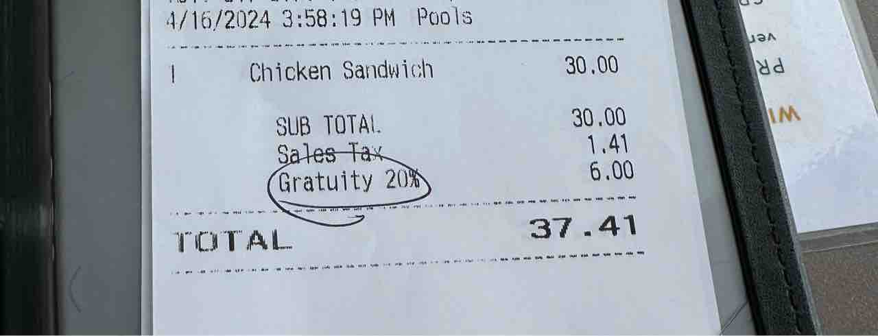 サンドイッチ1個とタックスとチップで37ドルか…!